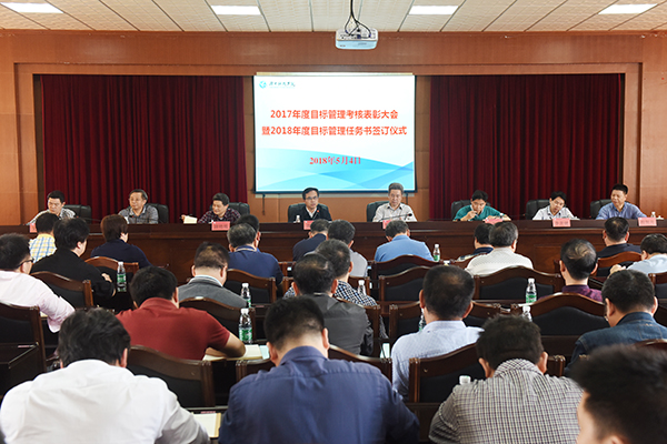 本网讯 实干成就伟业,奋斗续写辉煌。为表彰先进,落实责任,推动工作,5月4日下午,学校举行2017年度目标管理考核表彰大会暨2018年度目标管理考核责任状签订仪式。党委书记陈弘,校长曾宝成及全体在校领导出席,会议由陈弘主持。