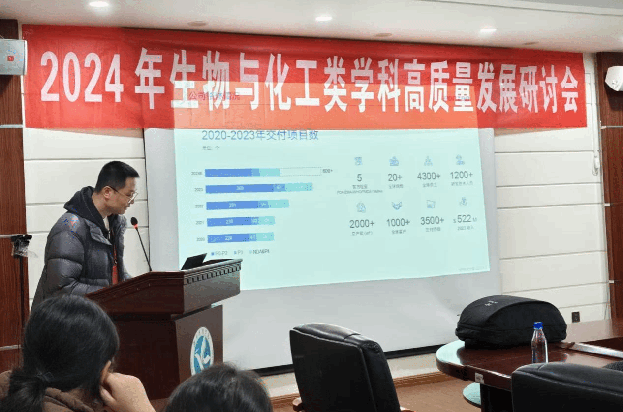 会议伊始,王宗成分别介绍了张洪飞博士和钟林博士,叮嘱同学们认真学习会议内容,积极与老师交流自身困惑。张洪飞博士就行业动态与前沿趋势,制药专业发展状况,以及新兴技术和理念向同学们进行了详细的介绍,同时对行业所需的个人能力进行了全面且深入的分析和评价,为同学们勾勒出了清晰的职业发展蓝图。钟林博士分享了公司过往成功案例,具体介绍了制药工程专业知识应用前景,详细阐释了制药工程专业的人才需求导向,鼓励同学们争做富有创新思维敢于突破传统的“开拓者”,争做实践操作能力出众、理论转化高效的“实干家”。