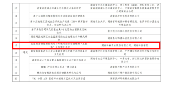 (本网讯 李尊华 刘乐)近日,湖南省环境科学学会对在我省生态环境相关领域的科学技术、科技成果转化、新技术引进与推广等方面做出突出贡献的个人和组织进行了表彰。我院生物化工学科博士团队联合湖南科森农业股份有限公司完成了《农业废弃物资源化利用与环境污染综合治理的“五位一体”生态循环系统》项目研究,该项目凭借其突出的创新性和实用性,在众多项目中脱颖而出,获湖南省环境保护科学技术二等奖。