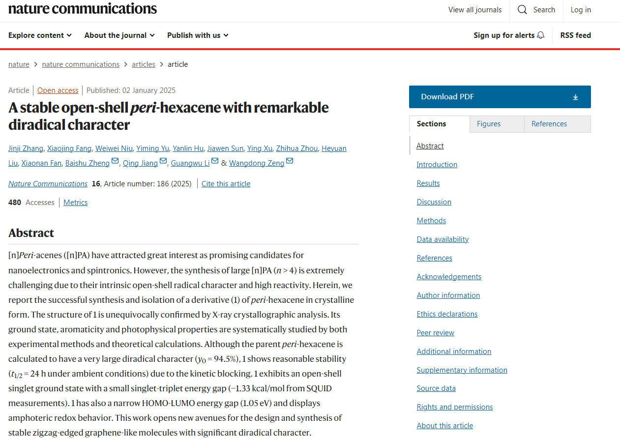 论文信息:A stable open-shell peri-hexacene with remarkable diradical character