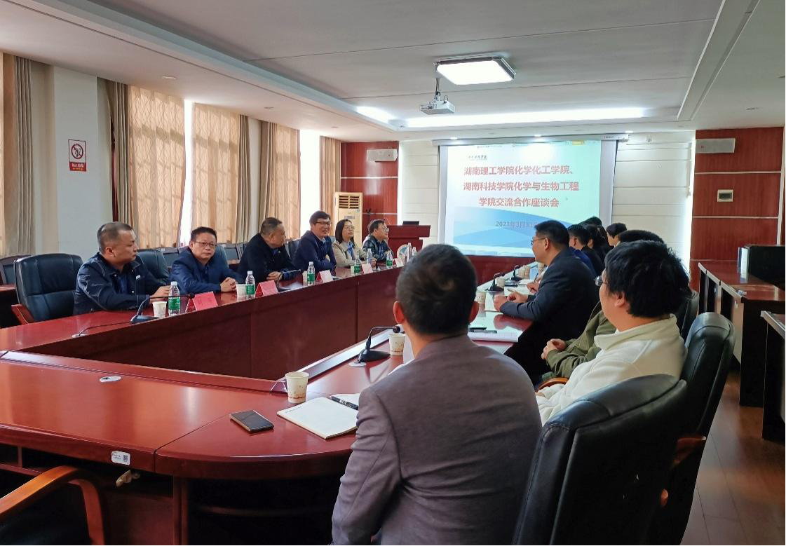 覃佐东对化学化工学院班子成员的到来表示了热烈欢迎,并就学院基本情况、学科建设、人才培养等进行了详细介绍。唐课文也向我院老师们介绍了湖南理工学院化学化工学院的基本情况。双方围绕学科建设、专业建设、人才培养、产学研合作等内容开展了自由交流和探讨。