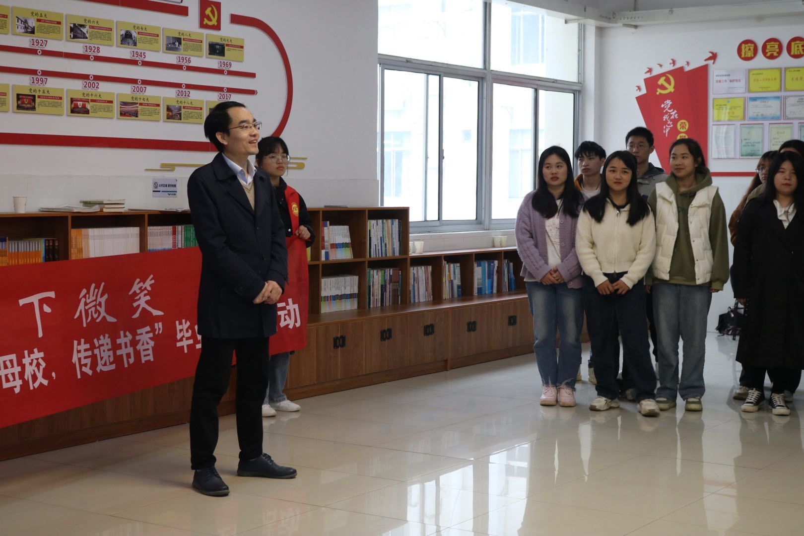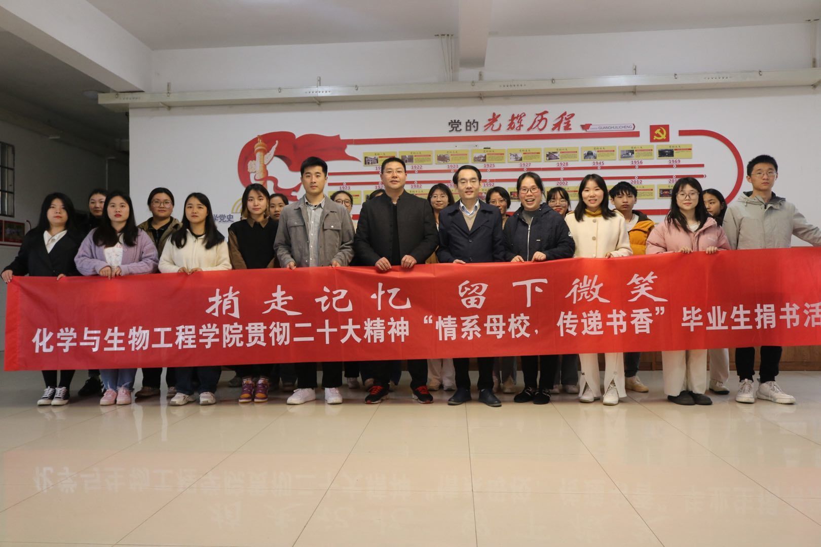 (本网讯 刘乐)今年是毛泽东等老一辈革命家为雷锋同志题词60周年。60年来,雷锋精神深入人心,在全国上下蔚然成风。为深入学习贯彻党的二十大精神,贯彻落实习近平总书记关于弘扬雷锋精神的重要指示精神,在beat365官网“传承雷锋精神,培育时代新人”活动月开展之际,化学与生物工程学院在逸夫楼4楼读书角组织开展了“情系母校、传递书香”毕业生捐书活动。学院院长覃佐东、副院长尹业师、党总支副书记基艳、化生院全体辅导员、19级捐书毕业生及志愿者等成员参加了此次活动。