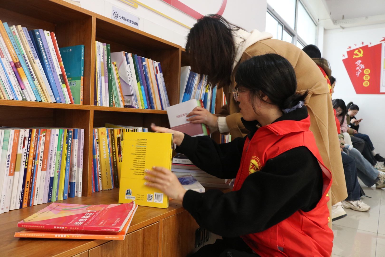 3月3日下午三点半活动正式开始,毕业生们积极响应、热情高涨、踊跃参与捐书活动。专业书籍、文学名著、考研资料等各类书籍数百余册,在毕业生和志愿者的共同努力下,琳琅满目的书籍整齐有序地摆放在指定书架上。