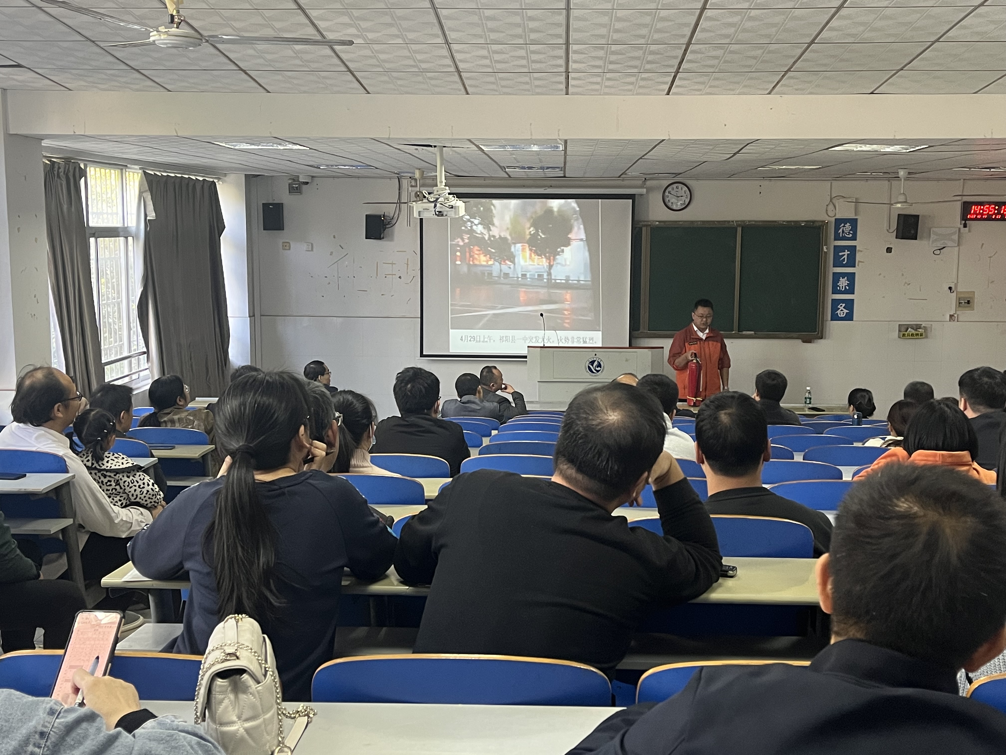 为进一步提高学院全体教职工消防安全意识和自防自救能力,全面筑牢校园消防安全屏障,迎接党的二十大胜利召开,10月11日下午,学院邀请永州市湘安消防公益服务中心宣传员谭塘峰为全体教职工开展消防安全知识培训会,培训会由党总支书记曾二青主持。