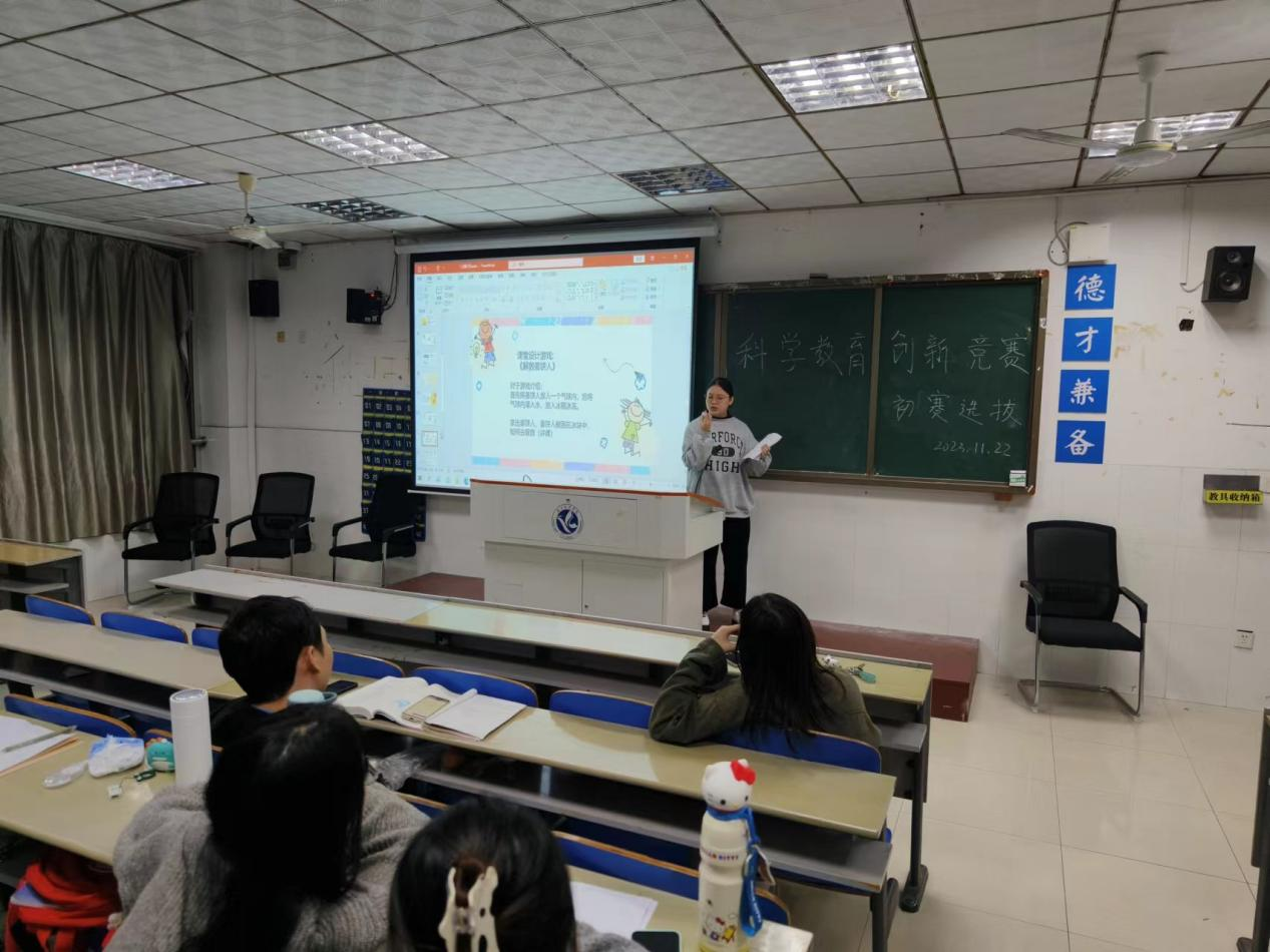 本网讯(曹颖 廖阳 林颖君)为深入贯彻习近平总书记“在教育‘双减’中做好科学教育加法”的指示,选拔优秀选手参加湖南省科学教育创新竞赛。11月26日上午9:00,化学与生物工程学院于逸夫楼323进行了2023年beat365中文官方网站科学教育创新竞赛的初赛。本次比赛由廖阳老师和曹颖老师担任评委,参赛选手主要来自化学师范和生物技术师范两个专业,参赛方向为教学设计和教具设计两方面。