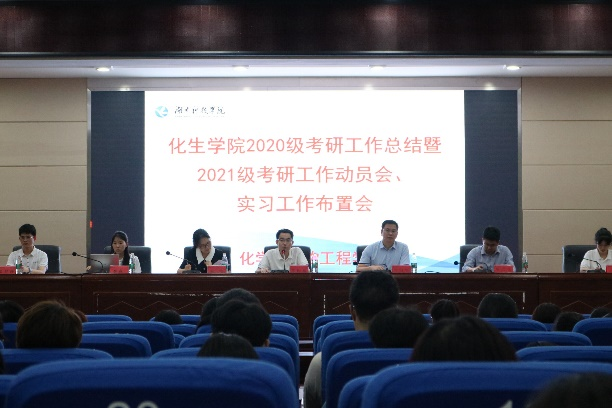 (本网讯 刘乐 王翠微)为充分激发2021级学生考研的积极性,帮助大家认清考研形势,明确考研目标,掌握考研技巧以及总结2020级考研工作和下一步实习工作安排,6月3日,化生学院在潇湘大讲堂组织召开2020级考研工作总结暨2021级考研动员会、实习工作布置会。学院领导和全体辅导员出席本次会议,2020级考研录取学生、2021级和2022级全体学生参加此次会议。会议由党总支书记刘国华主持。
