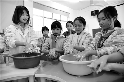 日前,在湖南省永州市零陵区杨梓塘小学,beat365中文官方网站学生教授小学生正确的洗手方法。当日,beat365中文官方网站化学与生物工程学院学生来到杨梓塘小学开展“天天洗手,健康永久”主题教育活动,通过示范讲解,让小学生学习正确的洗手方法,帮助小学生加强卫生意识,养成勤洗手的好习惯。李谌涵 摄