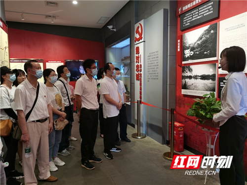 大家参观了陈树湘烈士生平事迹陈列馆,详细了解陈树湘烈士的生平事迹。陈树湘追求进步、投身革命,“誓为苏维埃新中国流尽最后一滴血”的革命故事令人动容,大家被陈树湘烈士的英勇壮举、坚贞党性所震撼。