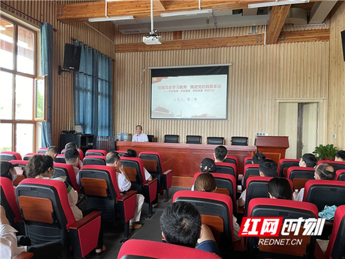 参观结束后,学院党总支书记曾二青为大家上了题为《加强党史学习教育,推进党的自我革命》的专题党课。