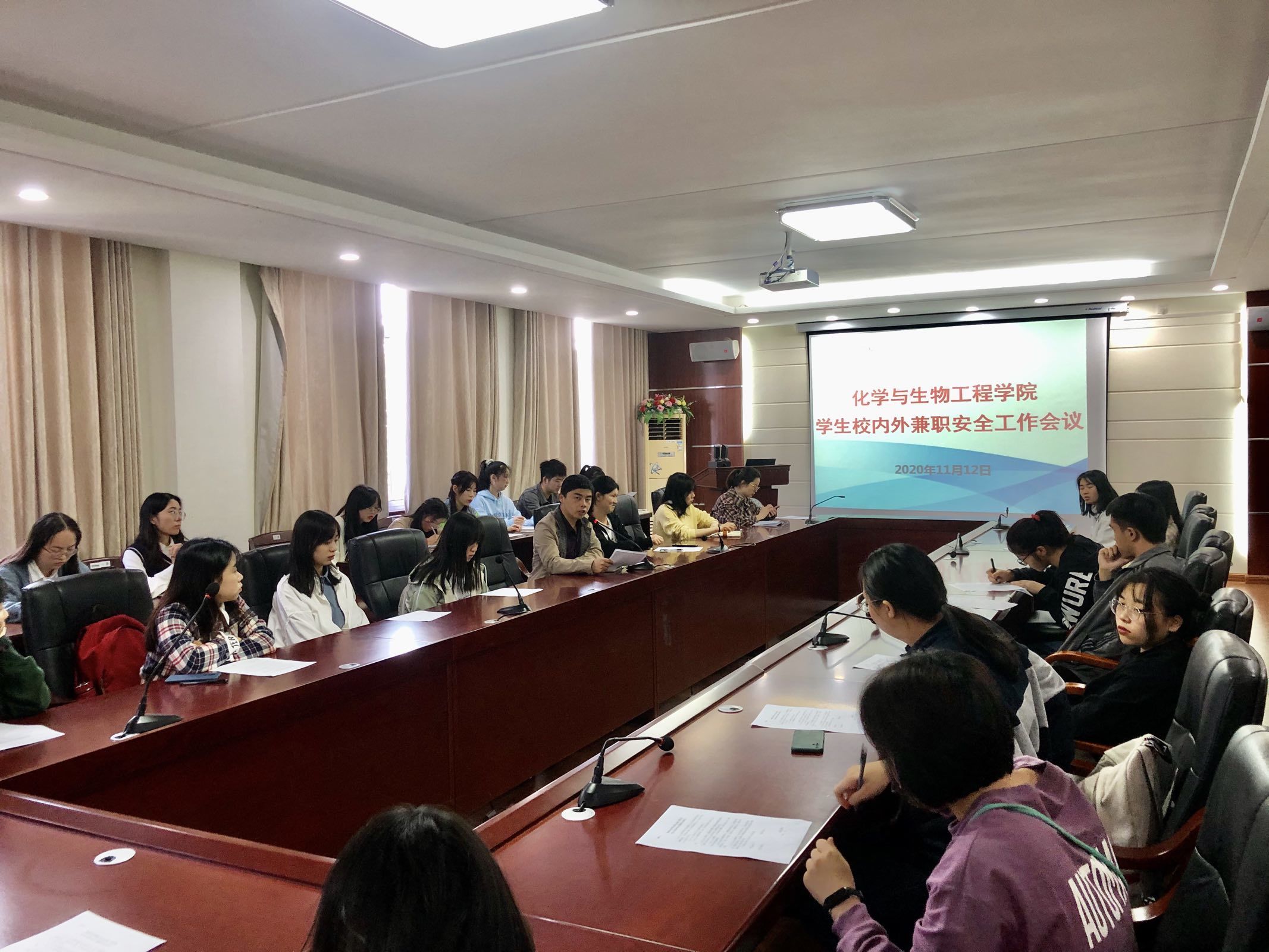 为进一步加强大学生安全教育与管理,11月12日中午,学院在逸夫楼320室召开大学生兼职安全工作会议,再次宣讲兼职安全注意事项,强调相关纪律要求,并与本学期在校内外兼职的53名学生签订安全责任状,确保学生人身安全和校园稳定。