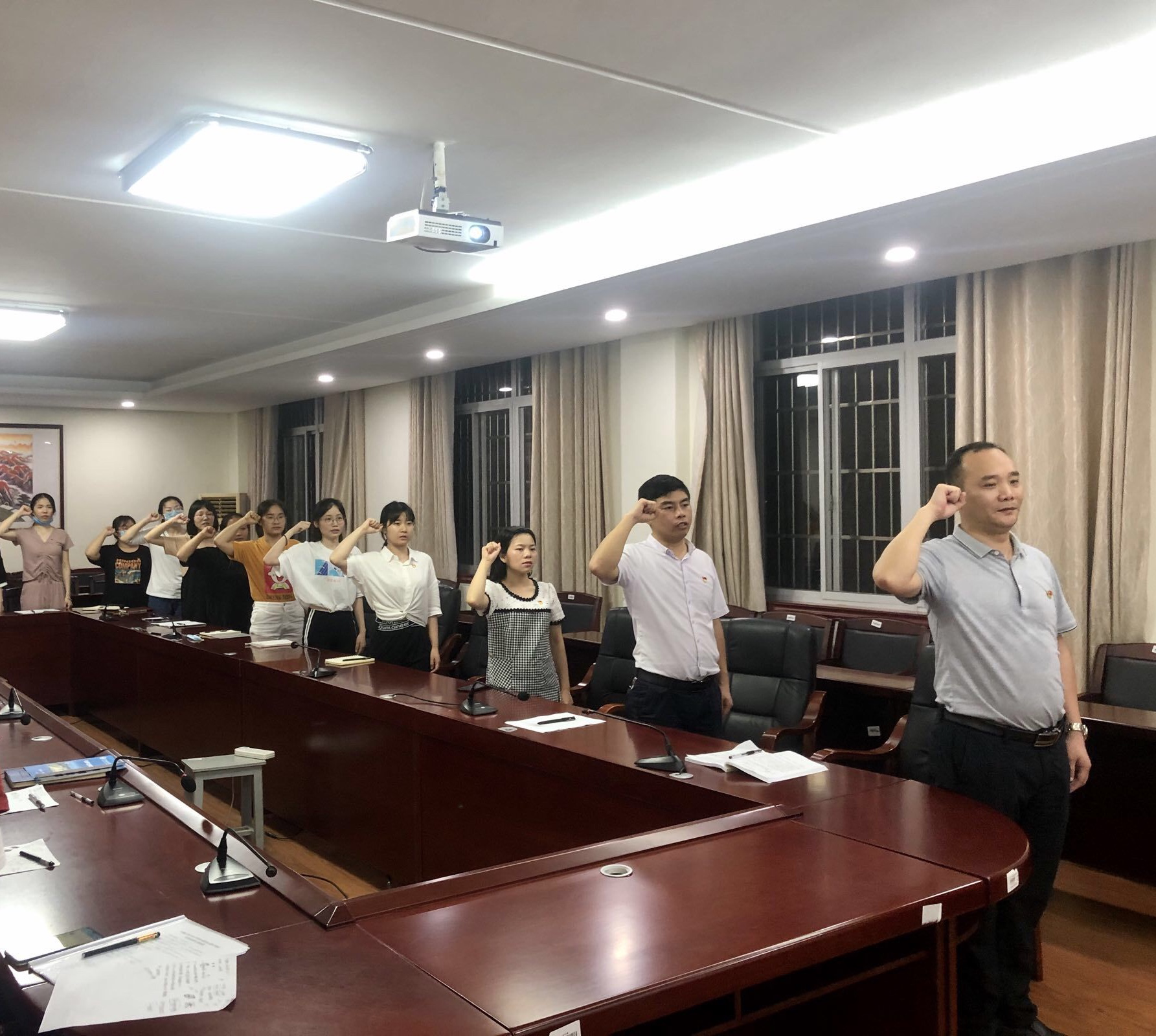 曾二青从“我们从2020年新冠肺炎疫情中看到了什么?”、“全国人民抗击疫情给我们带来的思考?”两个方面引入,要求毕业生党员要奋进新时代,不负韶华,强调要坚守初心、历练党心、纯洁内心、保持恒心、顺应民心。曾二青希望2020届全体毕业生党员在新的学习或工作岗位中,永葆入党初心,牢记母校“德才兼备、自强不息”的校训精神,担当青年使命,争做时代先锋,以实际行动为党旗增光、为湘科院添彩,努力成为中国特色社会主义合格建设者和可靠接班人。全体毕业生党员还共同起立宣誓,重温入党誓词。