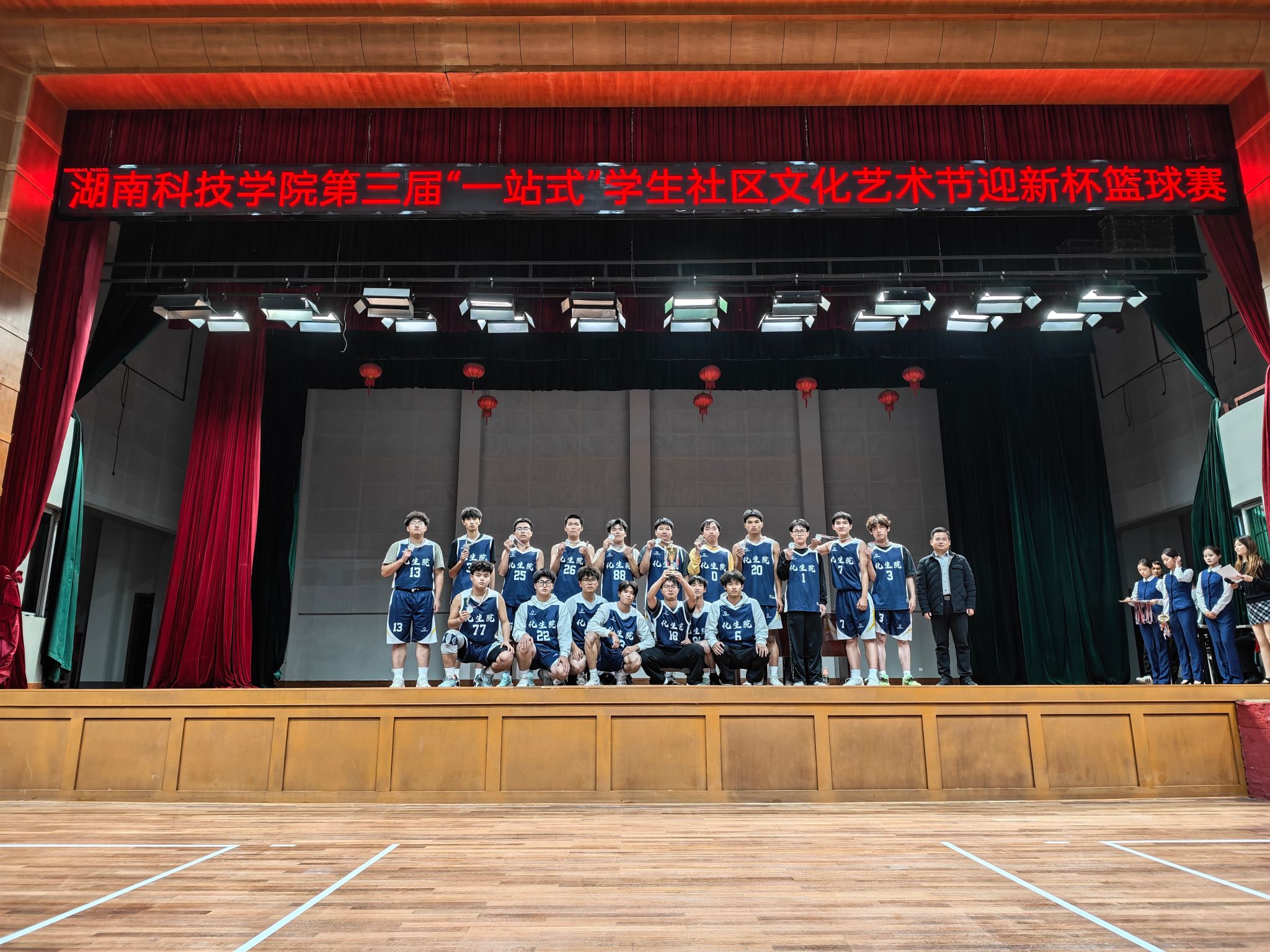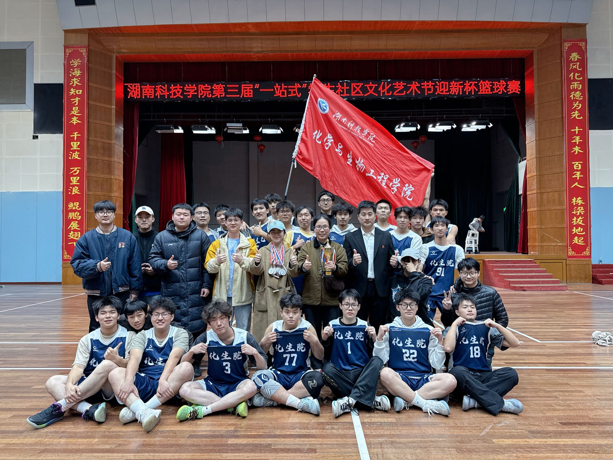 (通讯员 邓盎妍 许甲 陈美艳)11月25日,第三届“一站式”学生社区文化艺术节“迎新杯”篮球赛于beat365中文官方网站体育馆圆满收官,我院学子收获男子组亚军的好成绩。本次赛事自11月11日开赛,历时14日,由党总支副书记基艳领队、2名教练员带队、24名篮球运动员团结拼搏,以球会友凝聚青春力量,尽显化生学子拼搏奋进的精神风貌。