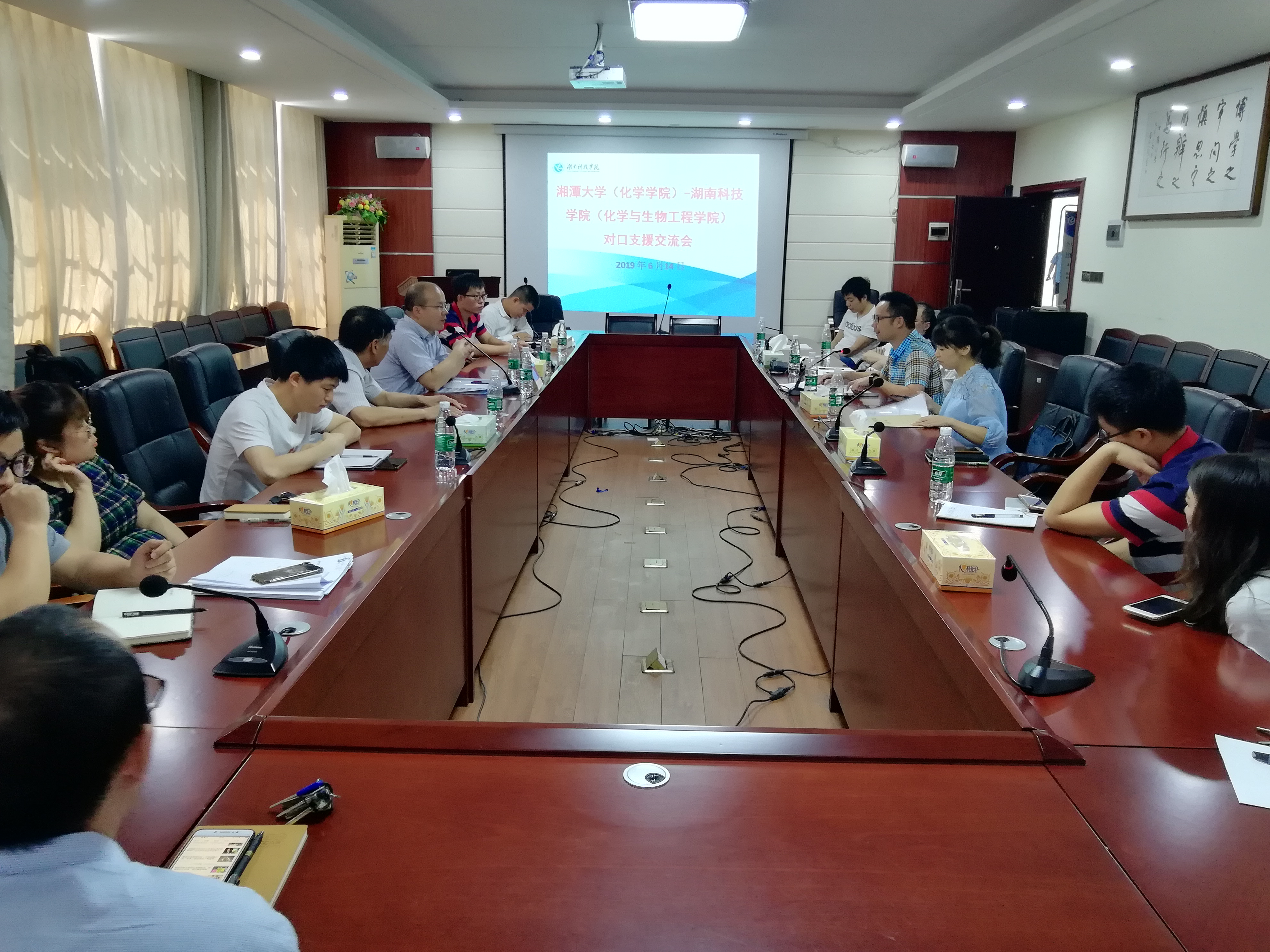 6月14日,湘潭大学对口支援beat365中文官方网站工作推进会在beat365官网召开。学校会议结束后,湘潭大学化学学院院长邓国军教授应邀在逸夫楼320室为我院老师和学生作题为《无过渡金属催化剂参与的吲哚直接功能化反应研究》的学术报告,报告会由刘小文院长主持。