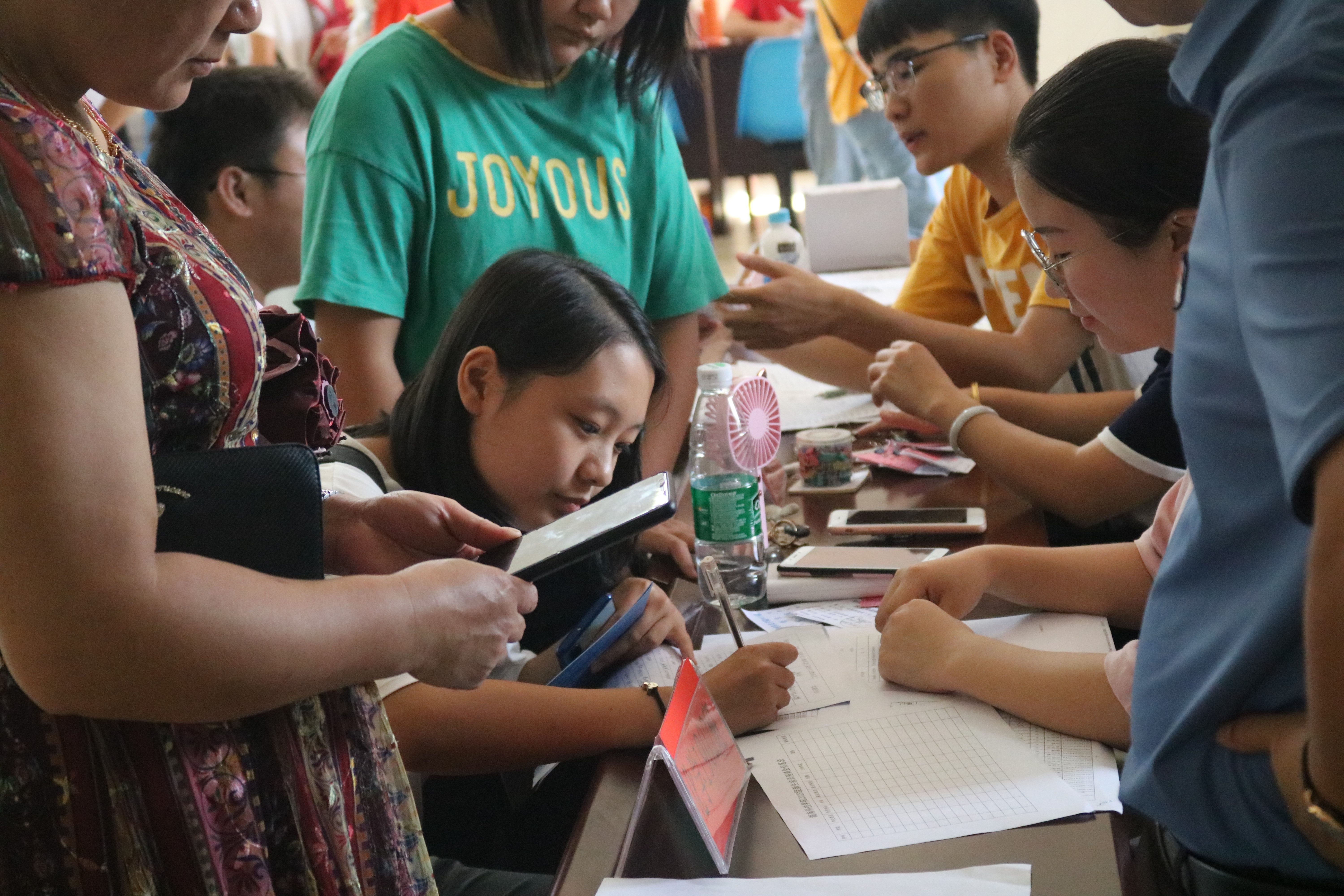 2019迎新工作在如火如荼进行着,各部门分工明确,各类指示牌简洁明了,汗流浃背的志愿者们也不辞辛苦,任劳任怨,帮新生搬运行李、为新生指路、给新生家长送水。当采访志愿者们时,他们表示:“化生院是一个温暖的地方,我们去年就是学长学姐接的,那时很感动,现在我们成了学长学姐,我非常愿意把这份温暖传递下去。”
