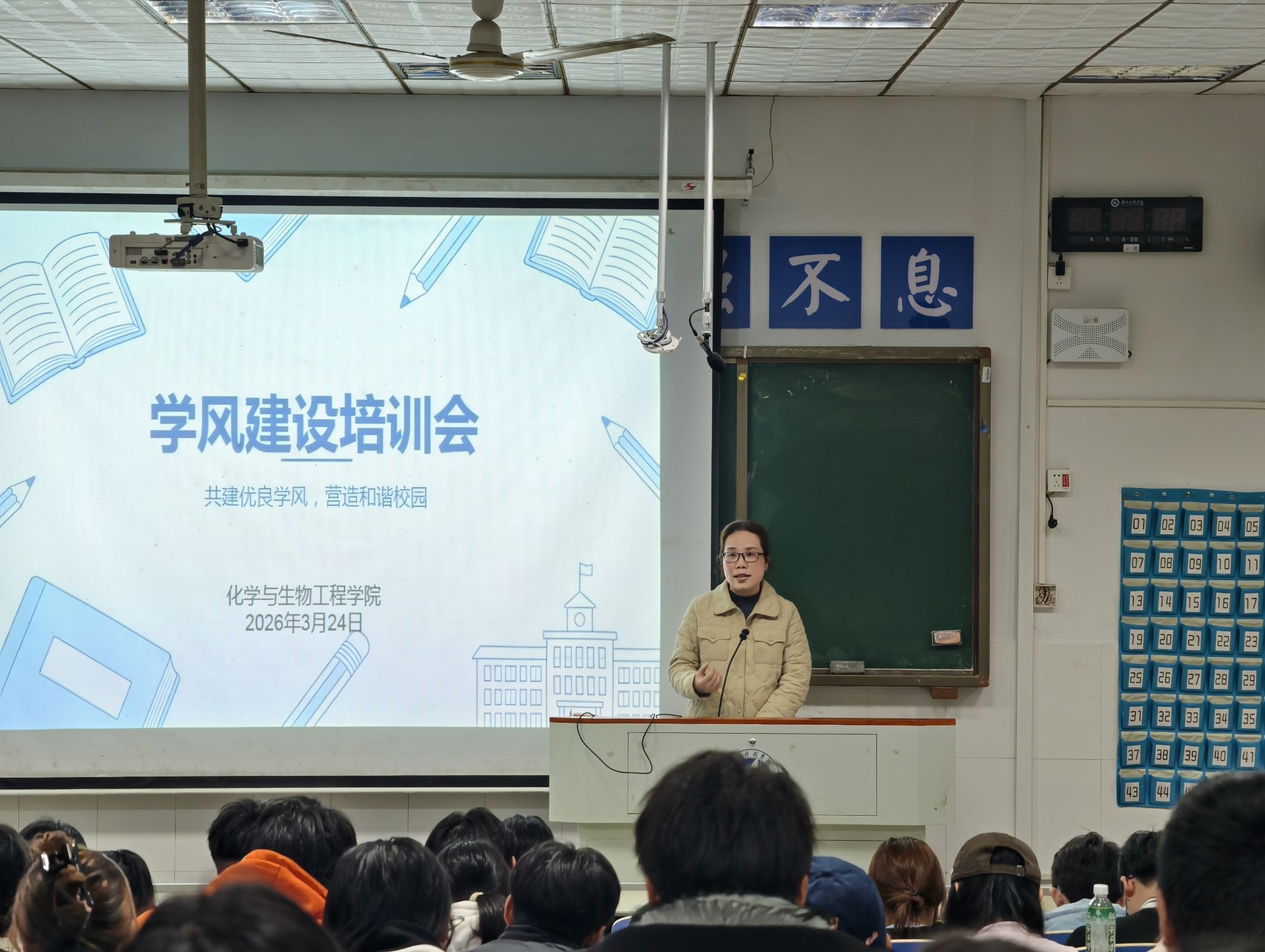 (本网讯 邓盎妍)为强化学生干部引领作用,夯实学院学风建设基础,3月24日,我院于逸夫楼101教室面向全体学生干部召开学风建设培训会,副院长肖新生、院党总支副书记基艳及院学工办全体辅导员出席。