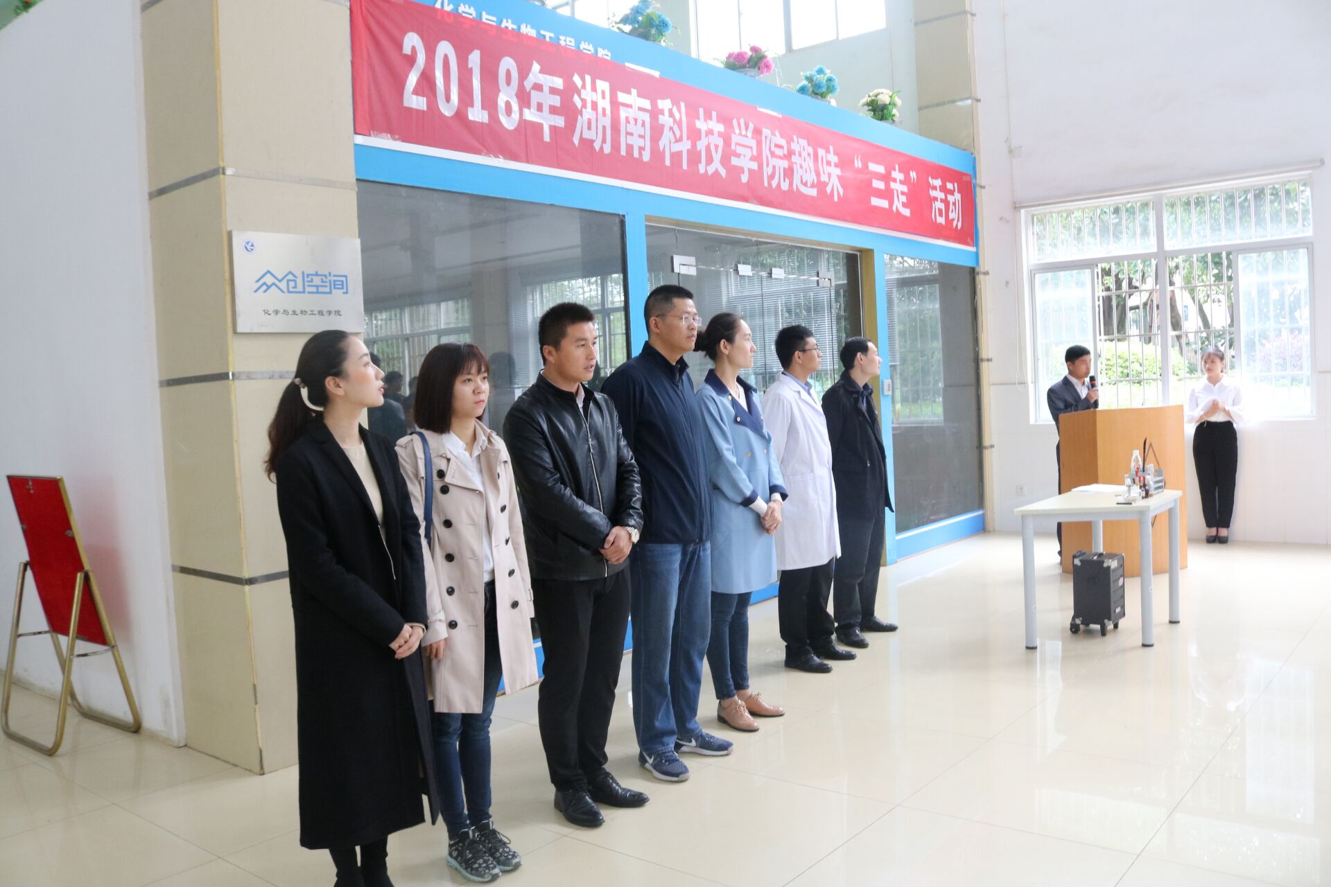 为丰富大学生课余生活,培育优良学风,10月13日上午,以“走出宿舍、走出网络、走进科学实验室”为主题的“趣味三走”活动启动仪式在逸夫楼侧厅举行。校团委书记刘佳、化生学院党总支副书记任学兵及部分学院的分团委书记出席了此次活动。