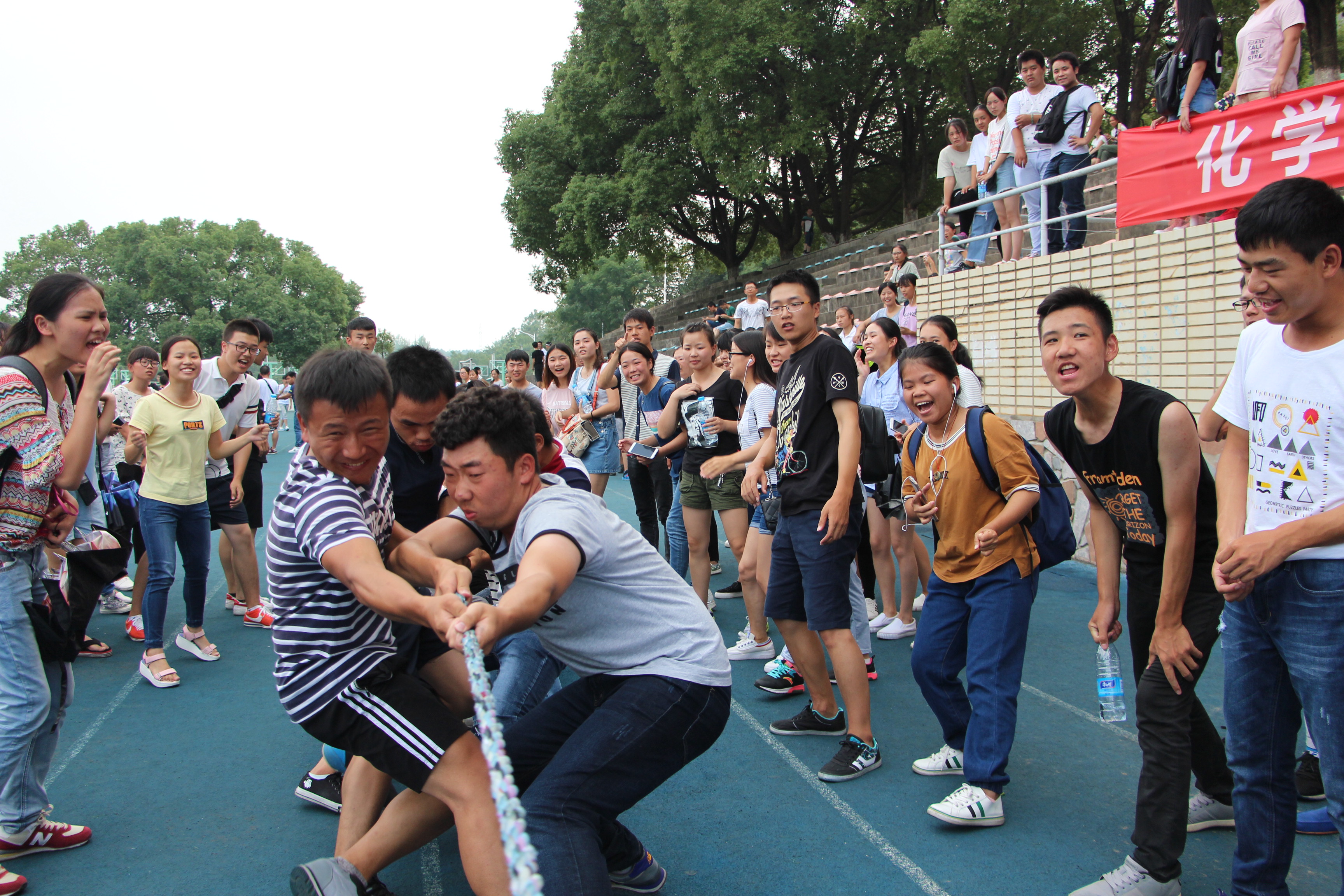 本网讯(通讯员 夏慧聪)“一班加油,一班加油……”、“一二,一二……”田径场场上加油声,呐喊声此起彼伏,处处洋溢着青春的滋味。9月24日下午,化学与生物工程学院在田径场举办了一场以“聚力”为主题的首届拔河比赛。党总支副书记曾二青,2016级辅导员周闻名、杨忠定老师出席本次比赛。