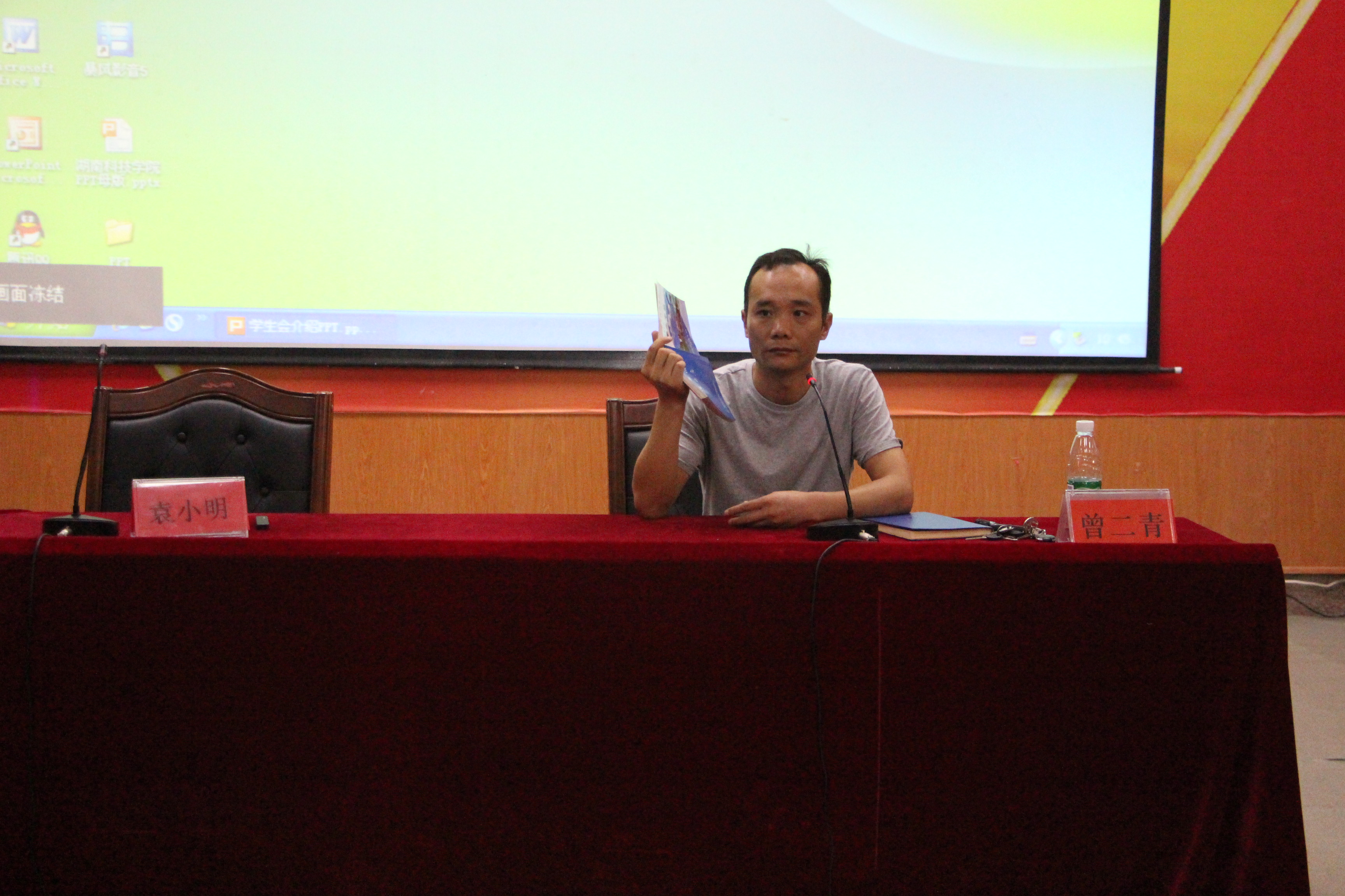袁小明向新生分享了20年来的亲身经历,并从大一新生的迷茫思想入手,结合大学生的实际,从做人、做事两方面为新生讲述了大学生如何养成。他强调,大学生应做一个有梦想、有健康体魄、有才华、有品味、讲诚信且正直的人。最后,他用自己的座右铭“做人应本分,做事须智慧”与新生共勉。袁小明校友的风趣幽默、浅显易懂的演讲博得了同学的阵阵掌声。