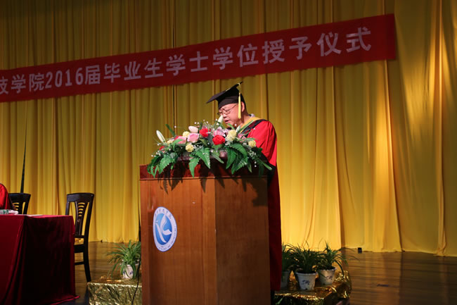 院长何福林和毕业生代表何龙先后发言,何福林对毕业学生表示由衷祝贺,希望所有人成为一个“有理想、有追求、有担当、有作为”的四有人才。