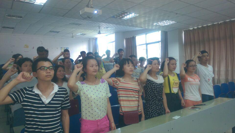 本网讯(屈杰) 6月28日下午,化生院在逸夫楼218举行党员入党宣誓仪式,2015年上期转正和发展的党员参加本次仪式。
