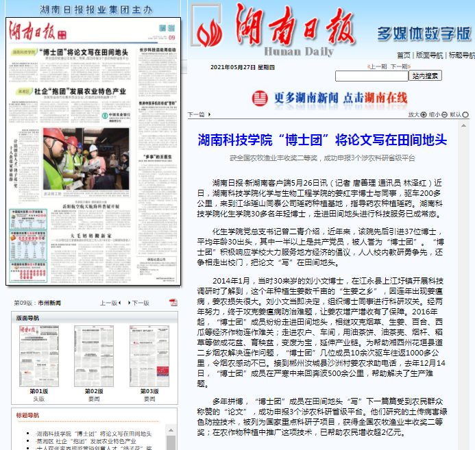 湖南日报:beat365中文官方网站“博士团”将论文写在田间地头