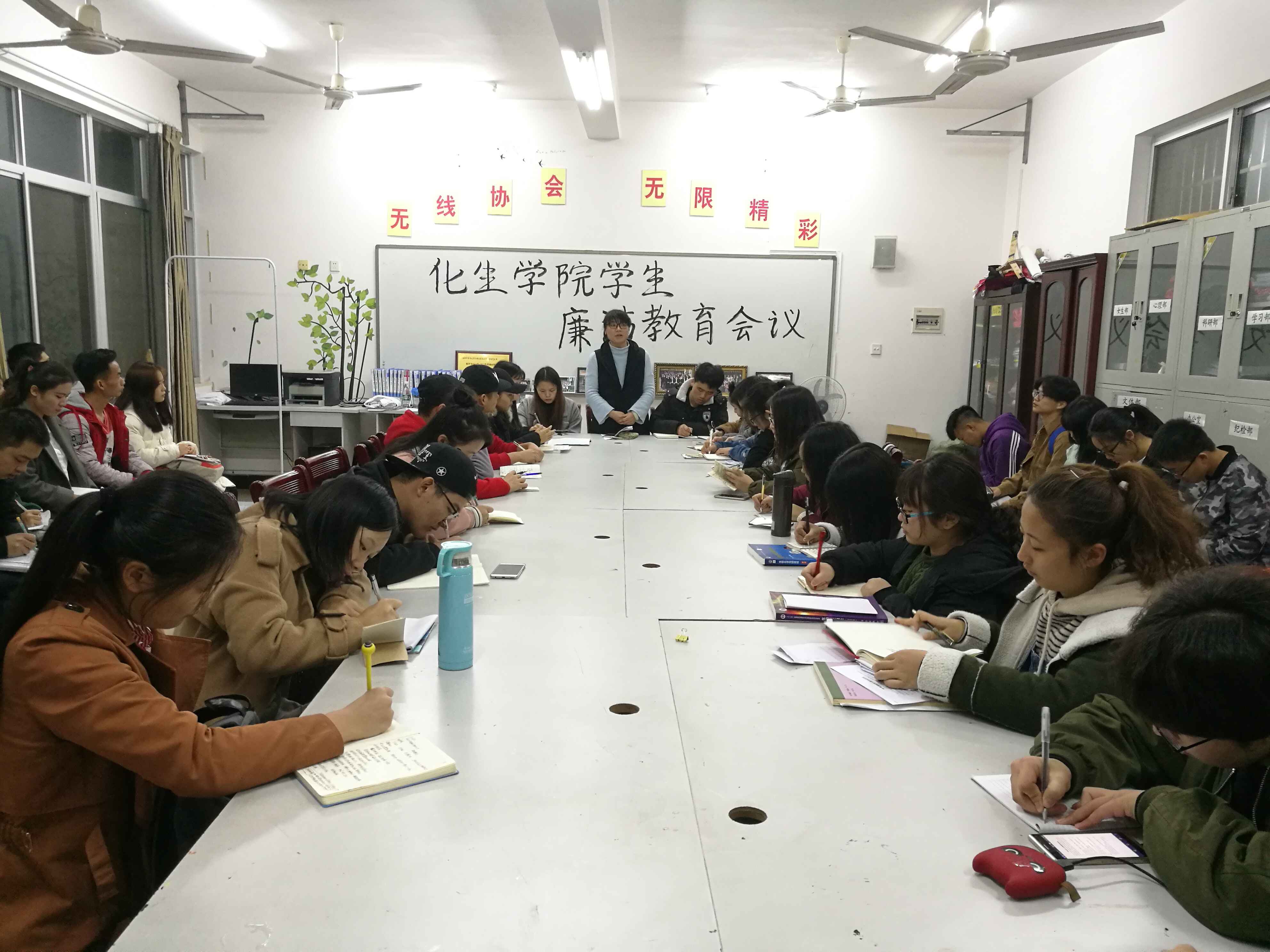 本网讯(通讯员 李劲)11月27日下午6点20分,化学与生物工程学院于逸夫楼314组织召开了廉洁教育座谈会。分团委书记周闻名、分团委副书记董剑清、分团委副主席方萌、社联主席漆盈出席本次会议,此次会议面向我院全体学生干部。