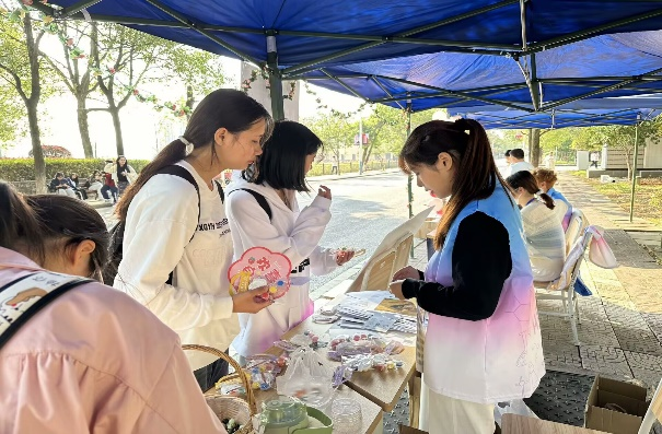 活动伊始,部门干事布置场地,讲解活动内容和游戏规则,吸引了大批同学前来围观和参与互动。本次活动共设计了3个小游戏,欢声笑语,“心口不一”小游戏不同的手势配上不同的口型,把现场的欢乐拉到了最高潮“手串DIY”活动,同学们可以自行挑选适的手链以及串珠,用来表达自己内心的想法和此刻的心情,获取到独属于自己的纪念小礼品。温暖至极“心灵相济”活动,参与同学可随机获得别人留下的暖心话语,也可写下自己的心里话,同辈互助,鼓舞他人,温暖自己。
