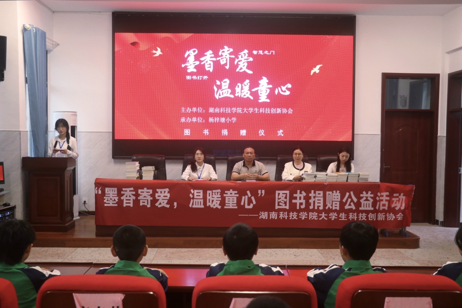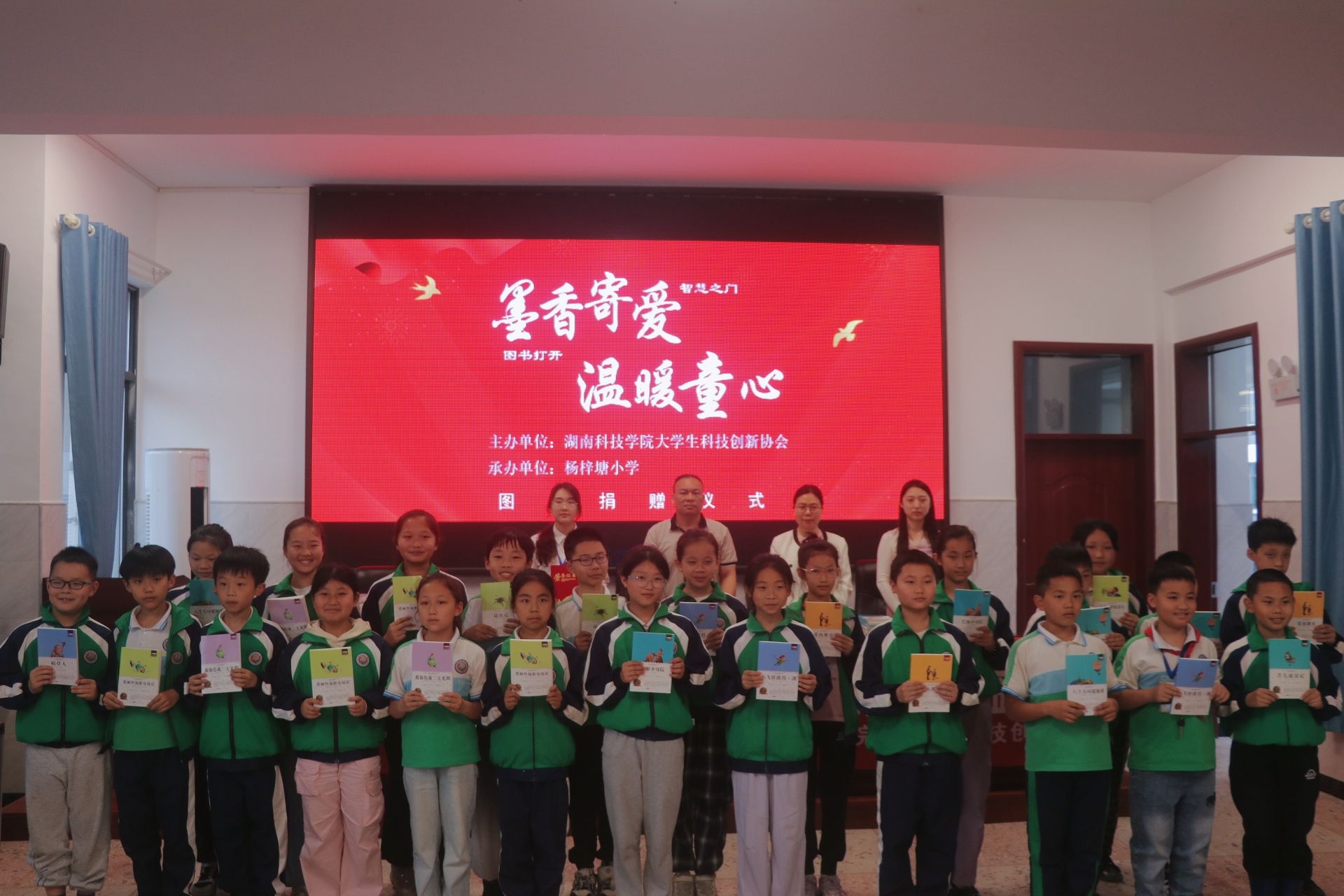本网讯(通讯员 米歆 陈卓妍 王翠微)春风送暖,书香传情。为传递知识,奉献爱心,化学与生物工程学院大学生科技创新协会4月22日于杨梓塘小学开展“墨香寄爱,温暖童心”图书捐赠活动,学院党总支书记刘国华、团总支部书记陈宇、大学生科技创新协会会长雷夏萍出席活动。本次活动共为杨梓塘小学送去600余份图书,为在校学生搭建起知识传递桥梁。