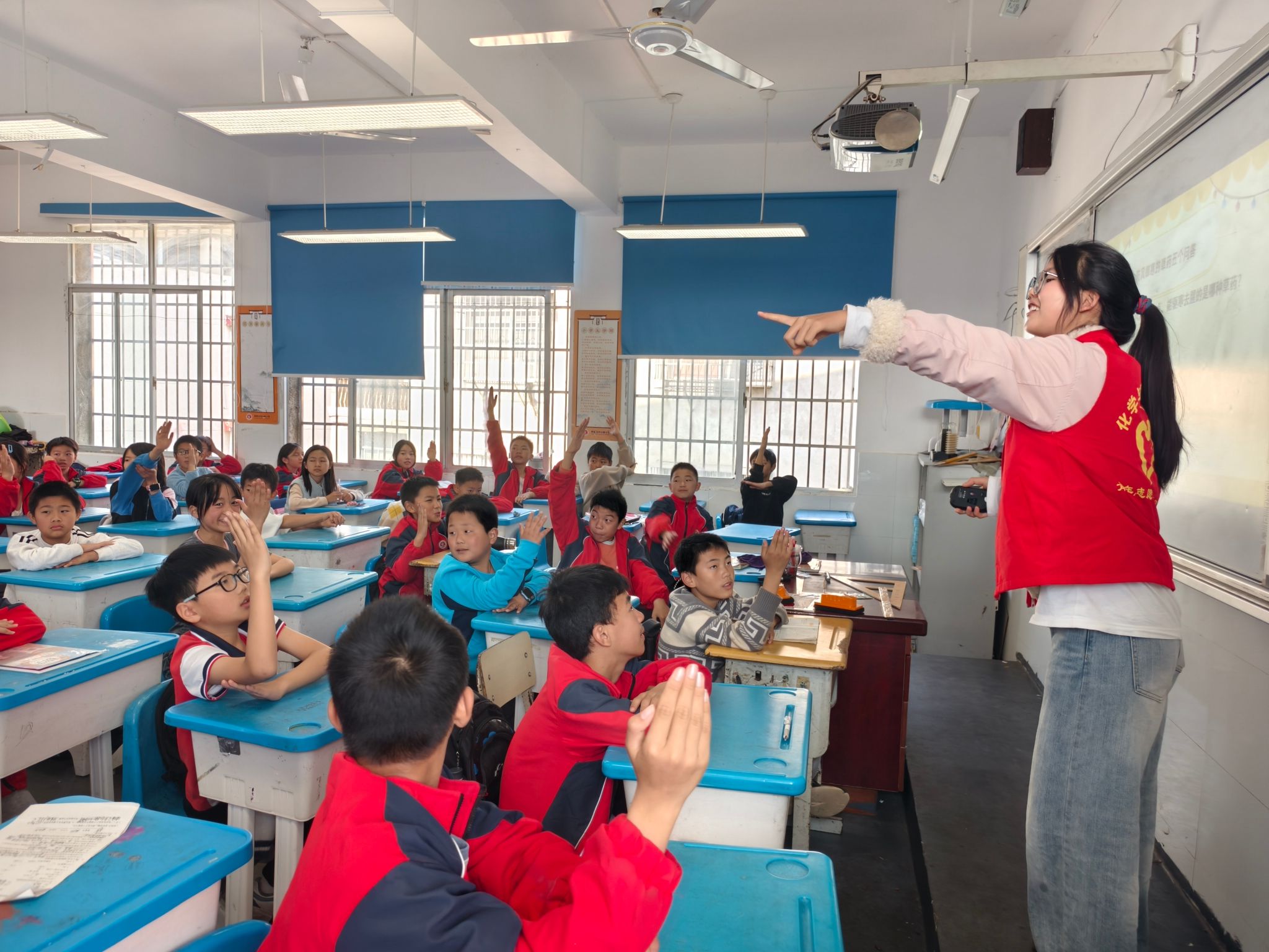 活动之初,志愿者们先带领学生们通过趣味互动,探索中医防寒智慧与植物过冬奥秘,让冬日校园充满着知识与温暖。随后,志愿者们又通过“防寒知识快问快答”环节调动学生们的积极性,并赠送回答正确的同学一份精美小奖品。