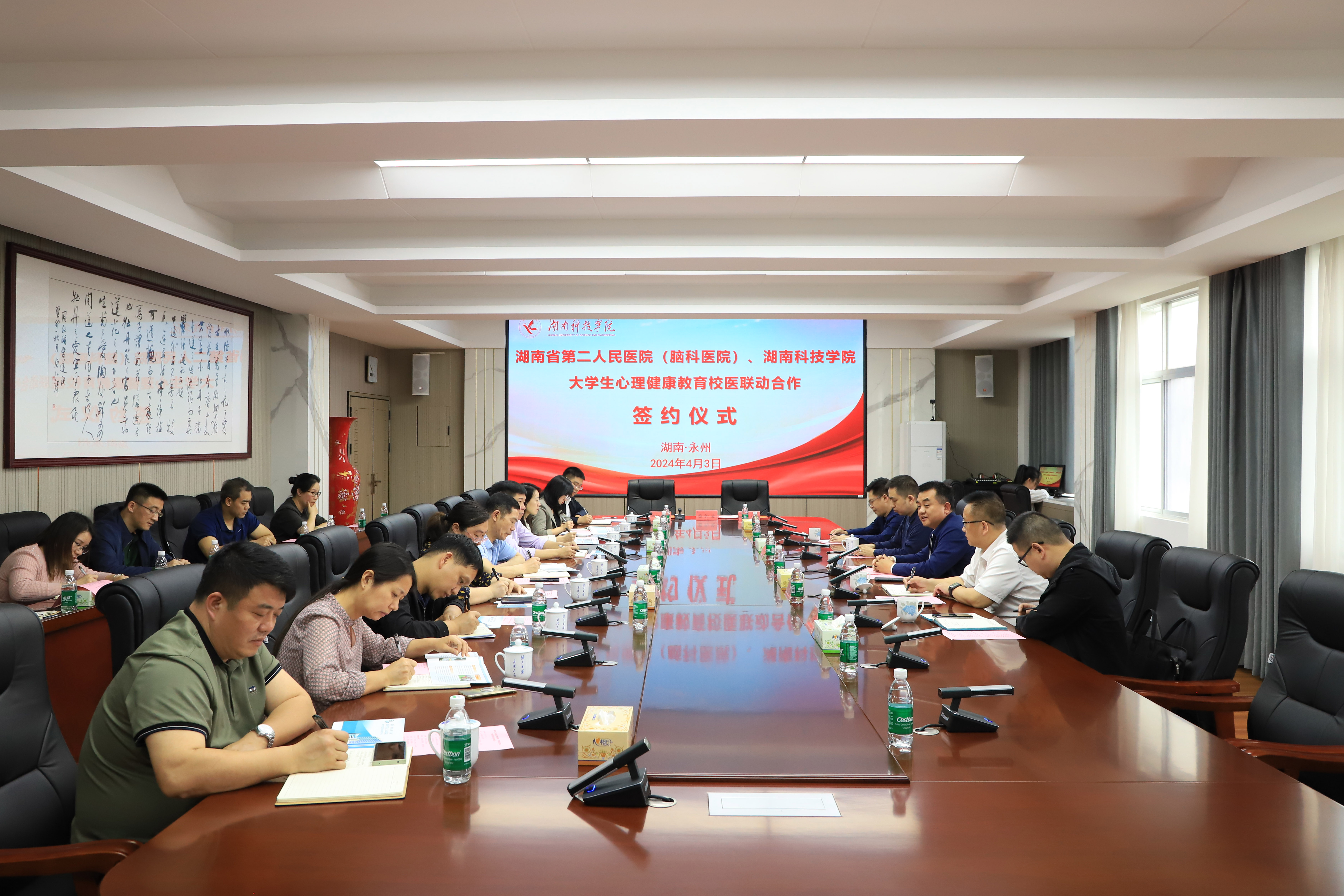 本网讯 4月3日,beat365官网与湖南省第二人民医院(湖南省脑科医院)举行“校医合作”签约仪式。湖南省第二人民医院党委副书记陈勇 ,永州市脑科医院党委书记、主任医师龙海鹏,校党委委员、副校长吴小林出席会议。