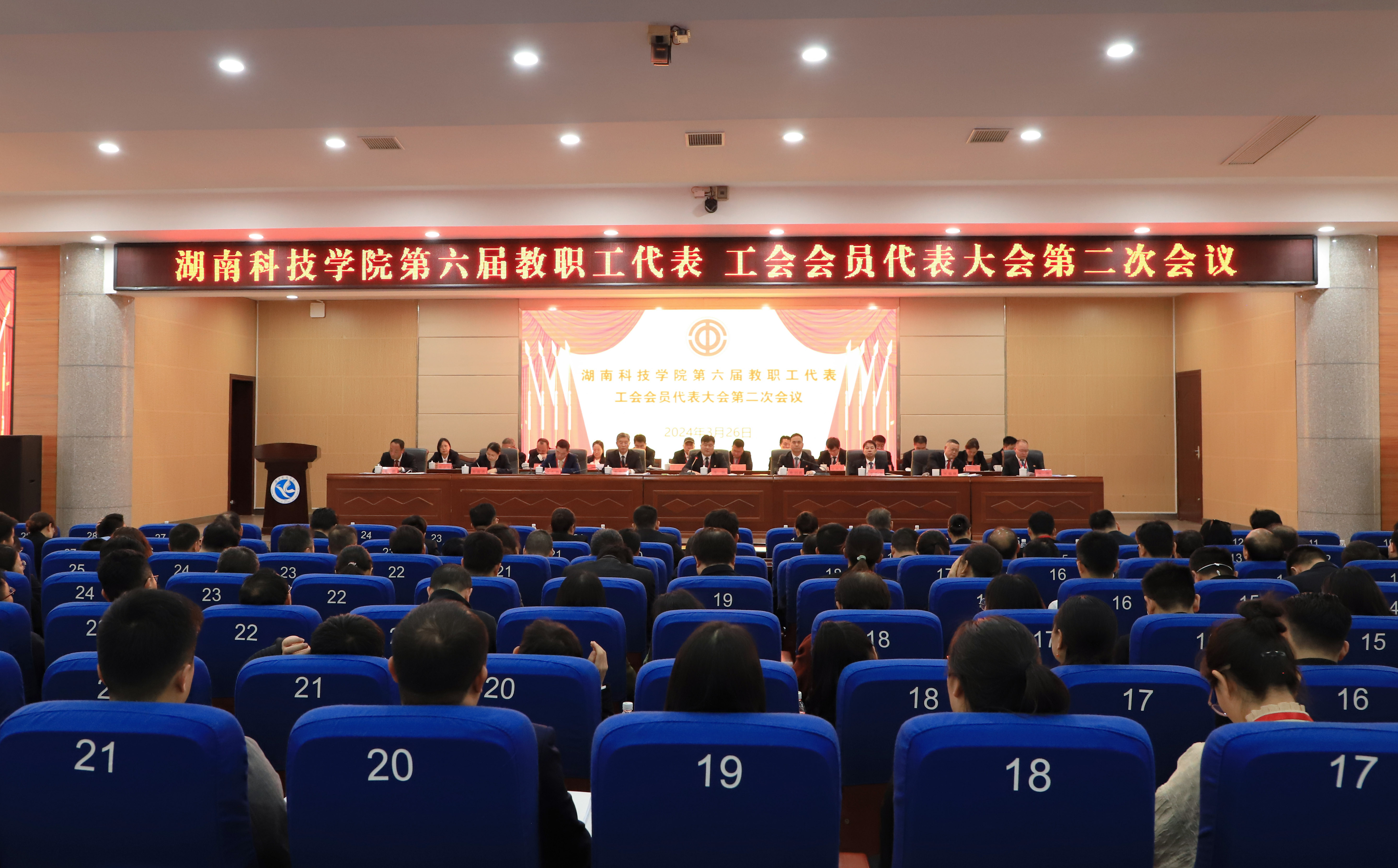 下午,为期一天的第六届教职工代表、工会会员代表大会第二次会议圆满完成各项议程,在潇湘大讲堂闭幕。
