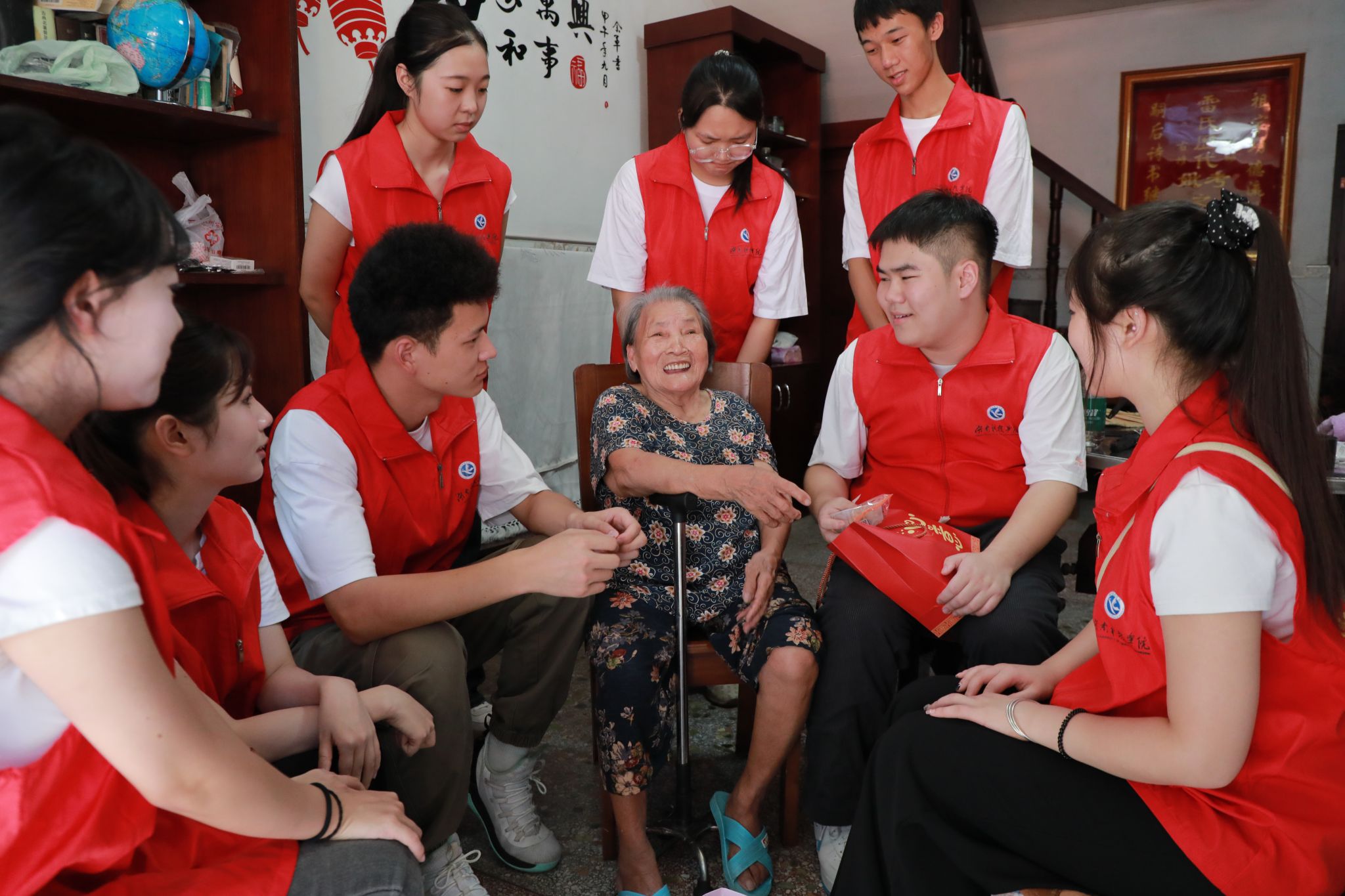 月满星辰,如约而至。文法学院的青年志愿者们一同走进中国历史文化街区“柳子街”,看望孤寡老人,与他们一起吃月饼、话中秋,送去温暖和祝福。迄今为止,学校的爱心接力志愿服务活动已经延续了37年。