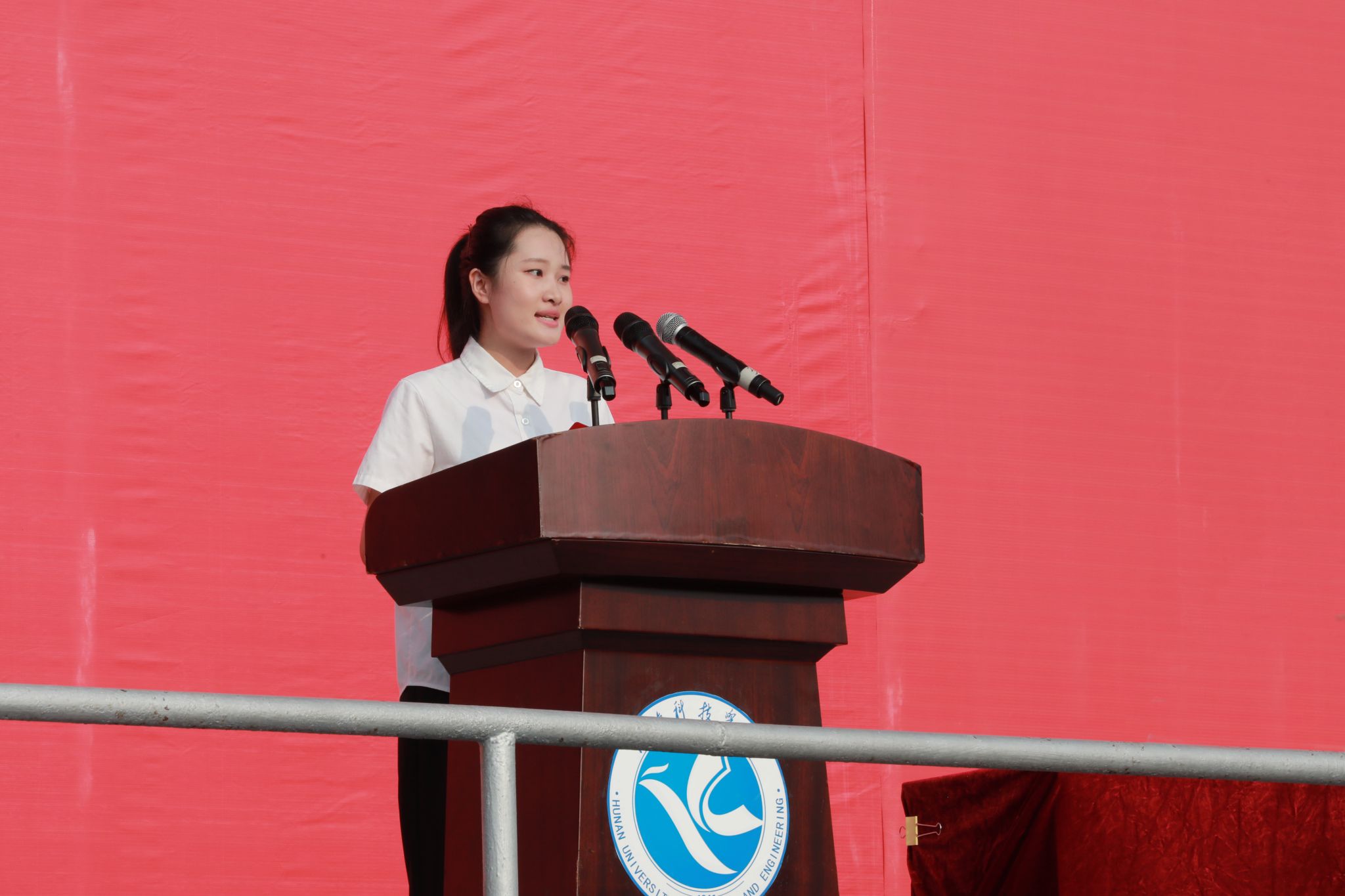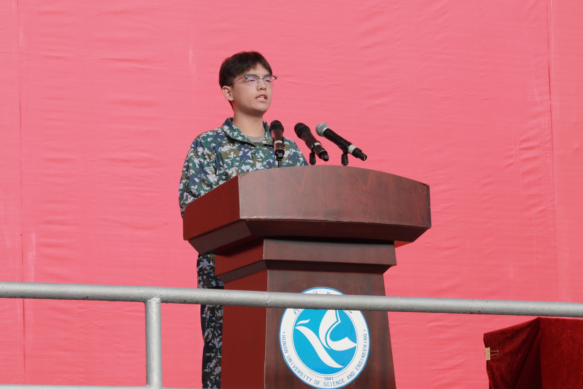 新生代表、传媒学院编导2402班廖章凯代表2024级全体新生发言,向为迎新工作付出辛勤劳动的领导、老师、工作人员,以及热情的学长学姐们,致以崇高的敬意和衷心的感谢。他代表全体新生共勉立志,表达了青春敢于逐梦、青春必须努力、青年必然担当的心声。