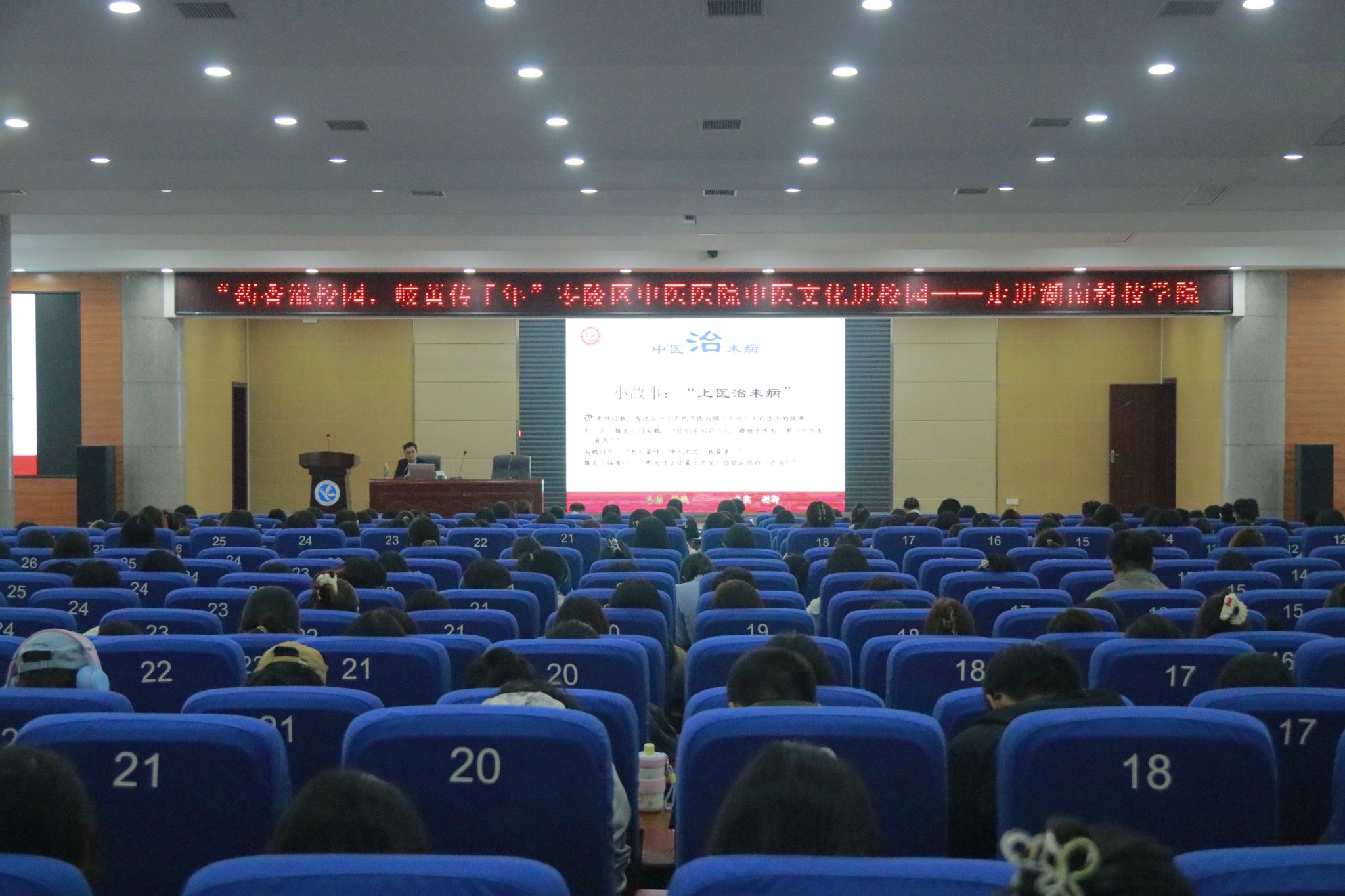 永州市零陵区中医医院治未病科主任杨荔勇以“未病先防、既病防变、病后防复”为主题,借助图片、视频等多媒体手段,讲解了相关中医养生知识。针灸推拿科主任谢明华及其团队为beat365官网师生表演了精彩绝伦的中医功法八段锦,详细讲解了八段锦的动作要领和练习技巧,展示了中医养生的独特魅力。