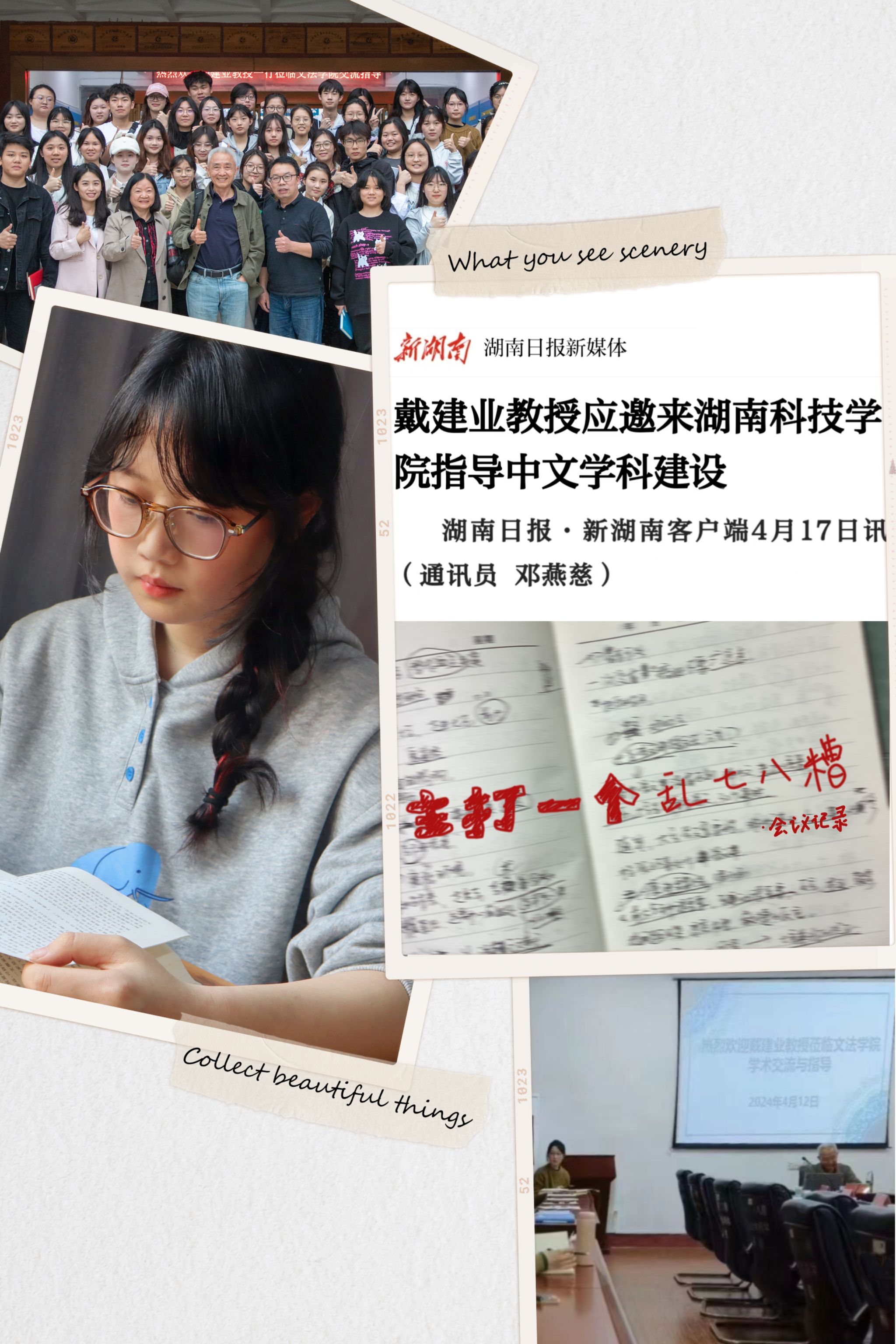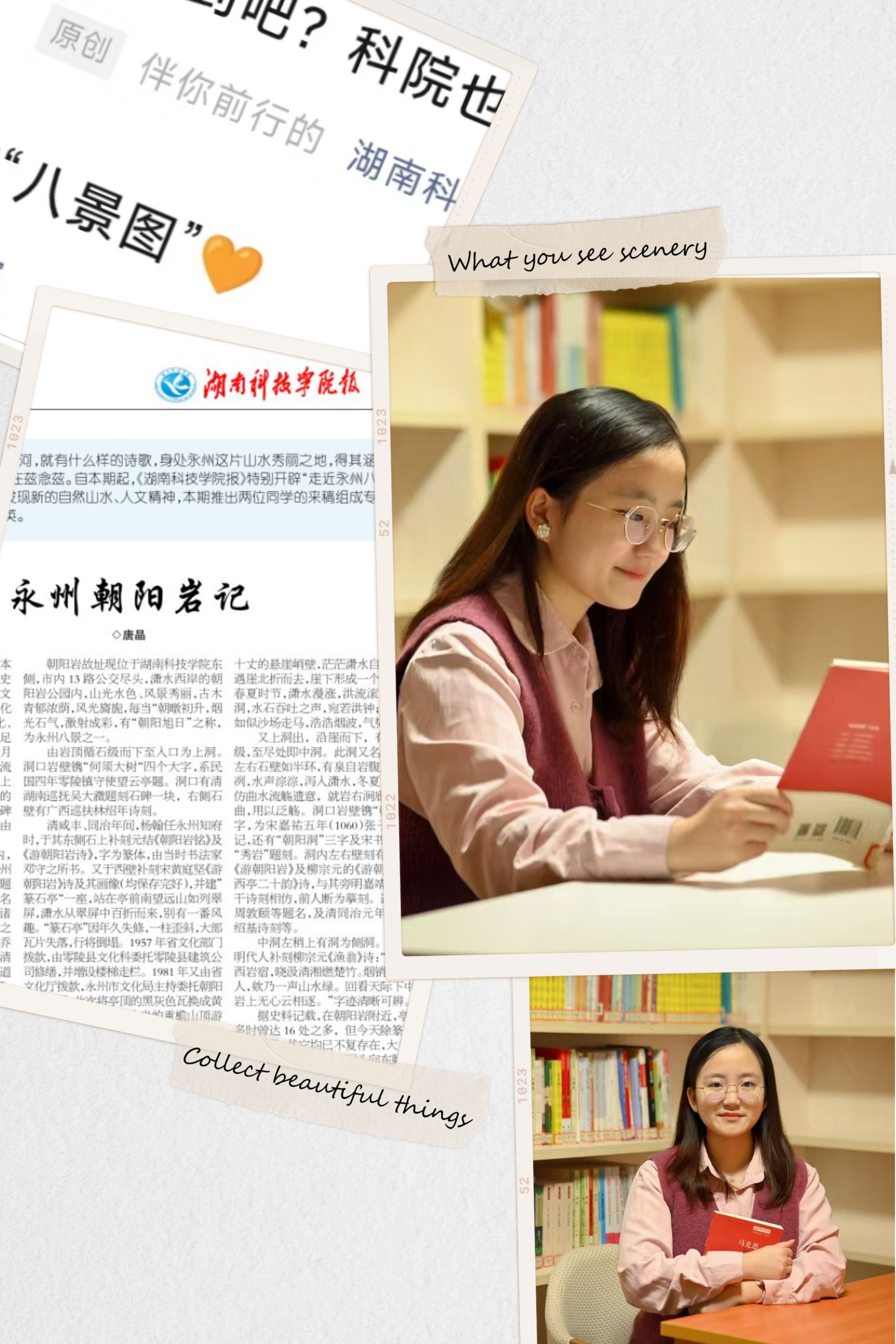在我印象最深刻的一次创作经历中,我和十几位志同道合的伙伴共同推进并策划了一个项目——《beat365中文官方网站报》特设的“走近永州八景”专栏。我们不仅在校内发起了征稿活动,还组织了多场线下活动,旨在鼓励师生们从全新的角度探索永州的自然美景与深厚的人文精神,以此来传递永州八景丰富的文化价值。经过团队与老师们的反复讨论和精心准备,这一专栏最终赢得了校内外广泛的好评,成为了传承和推广永州文化的一股重要力量。作为此次项目的参与者之一,我深感自豪,因为这不仅是对永州八景文化的致敬,更是对我们团队努力成果的肯定。“每一份努力都藏着未来的光芒”,这句话成为了我继续前行的动力源泉。