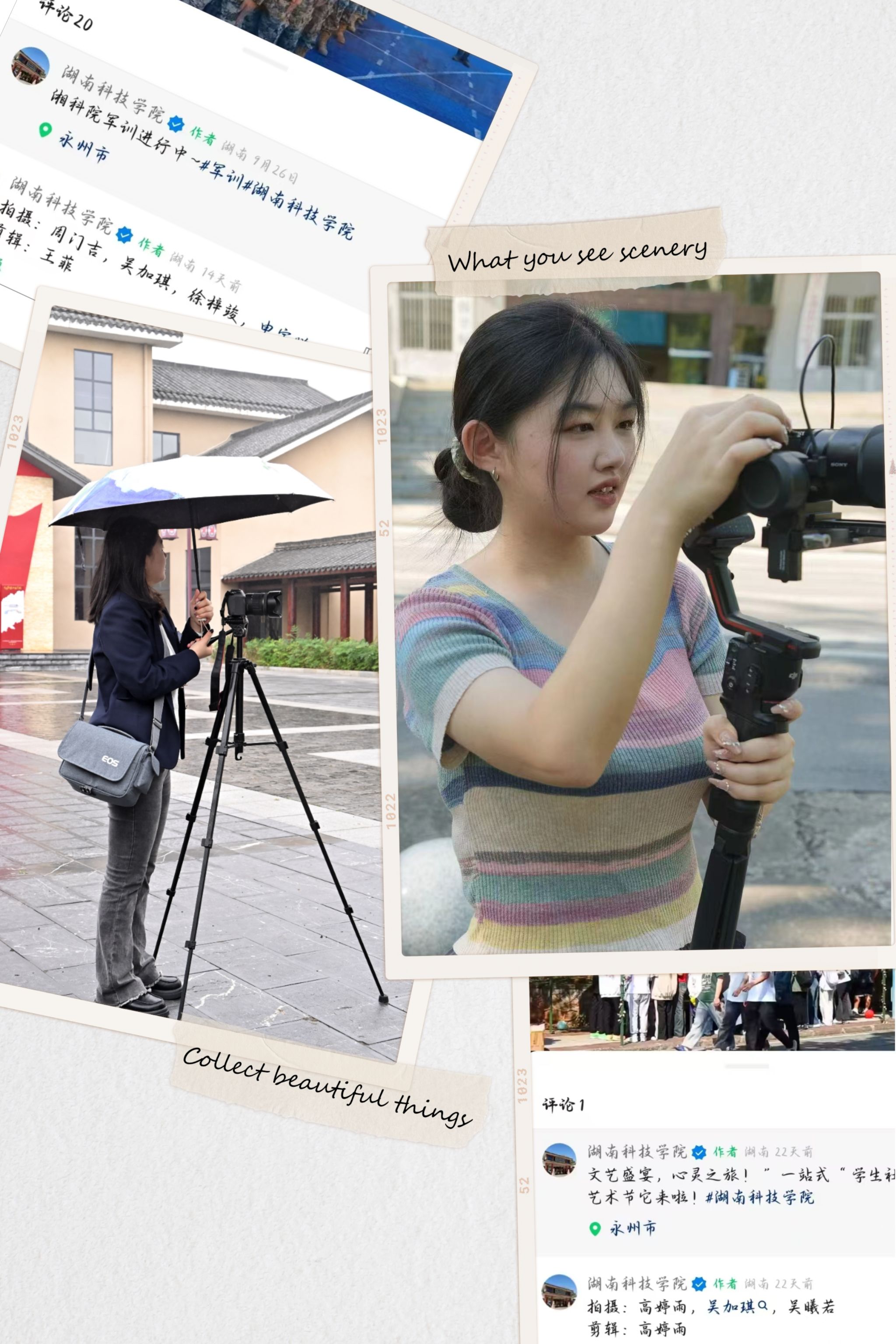 怀着对摄影的热爱,我加入了融媒体中心,成为一名学生记者,开启了在科院的摄影生涯。拍摄中,我既为错过精彩瞬间而惋惜,也为作品受到关注而高兴。两年间,融媒体中心提供了无数成长机会,从大型会议到校园活动,从运动赛场到人文景观,我积累了丰富的实战经验。最难忘的经历是拍摄《我的韶山行研学》活动纪录片。面对800人的庞大队伍,我感受到前所未有的压力。为此,我深入研究了相关纪录片,精心准备脚本,现场积极沟通协调,最终圆满完成了任务。在这里,我不仅提升了自己的技能,还结识了一群志同道合的朋友,共同创造了无数美好回忆。“在镜头背后,我们记录世界;在光影之间,我们遇见更好的自己。”