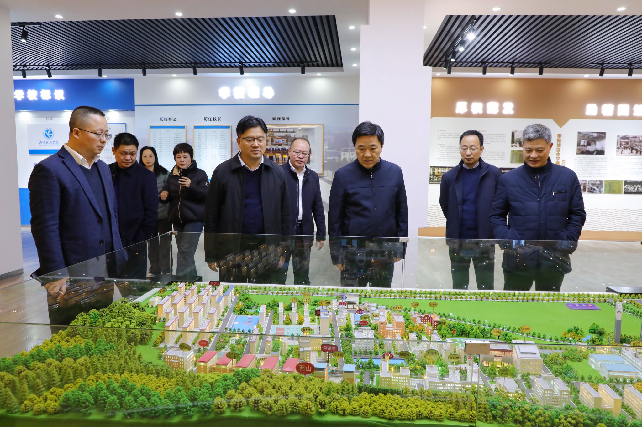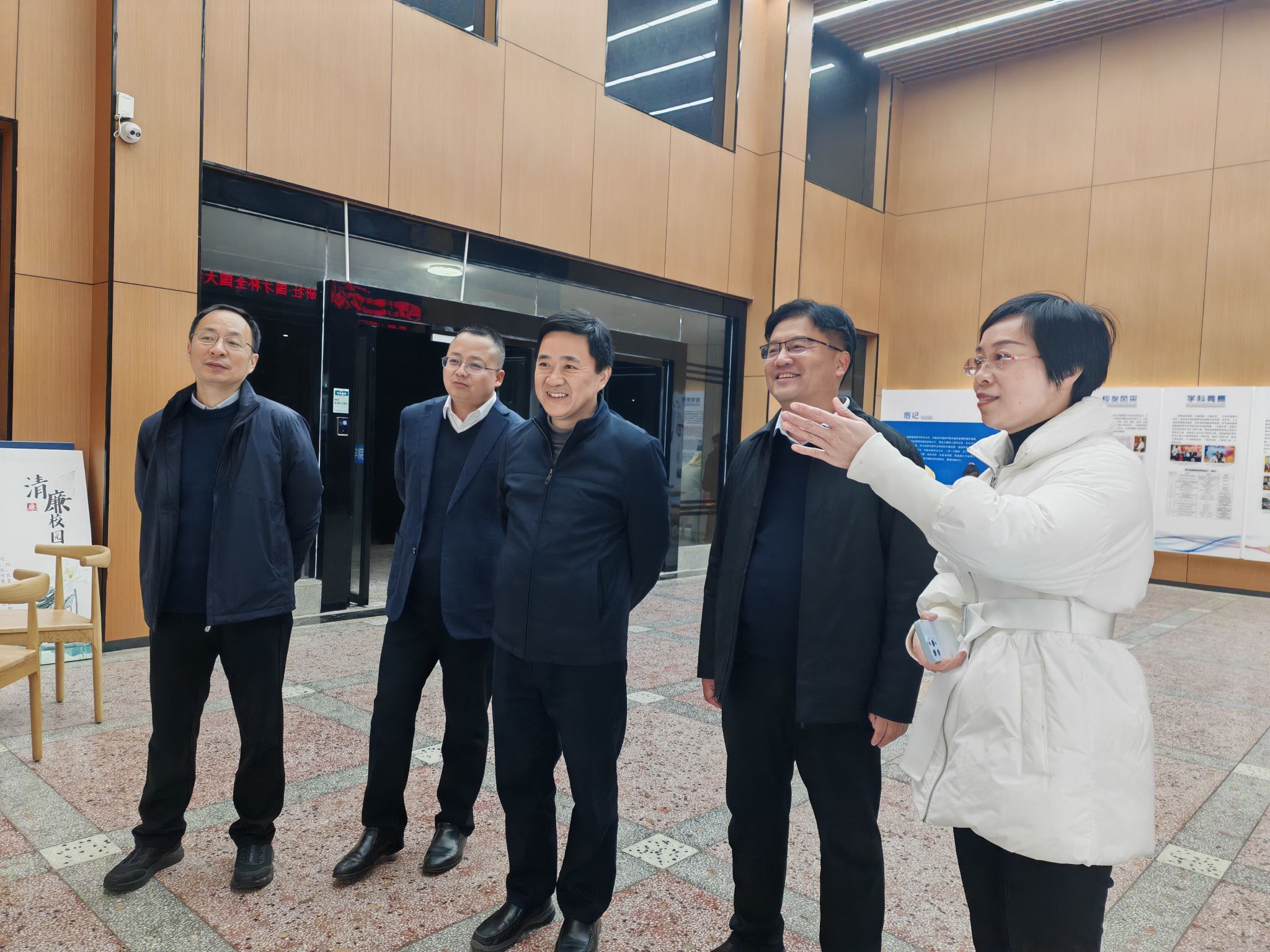 蒋强先一行先后考察了外国语学院和校史馆。
