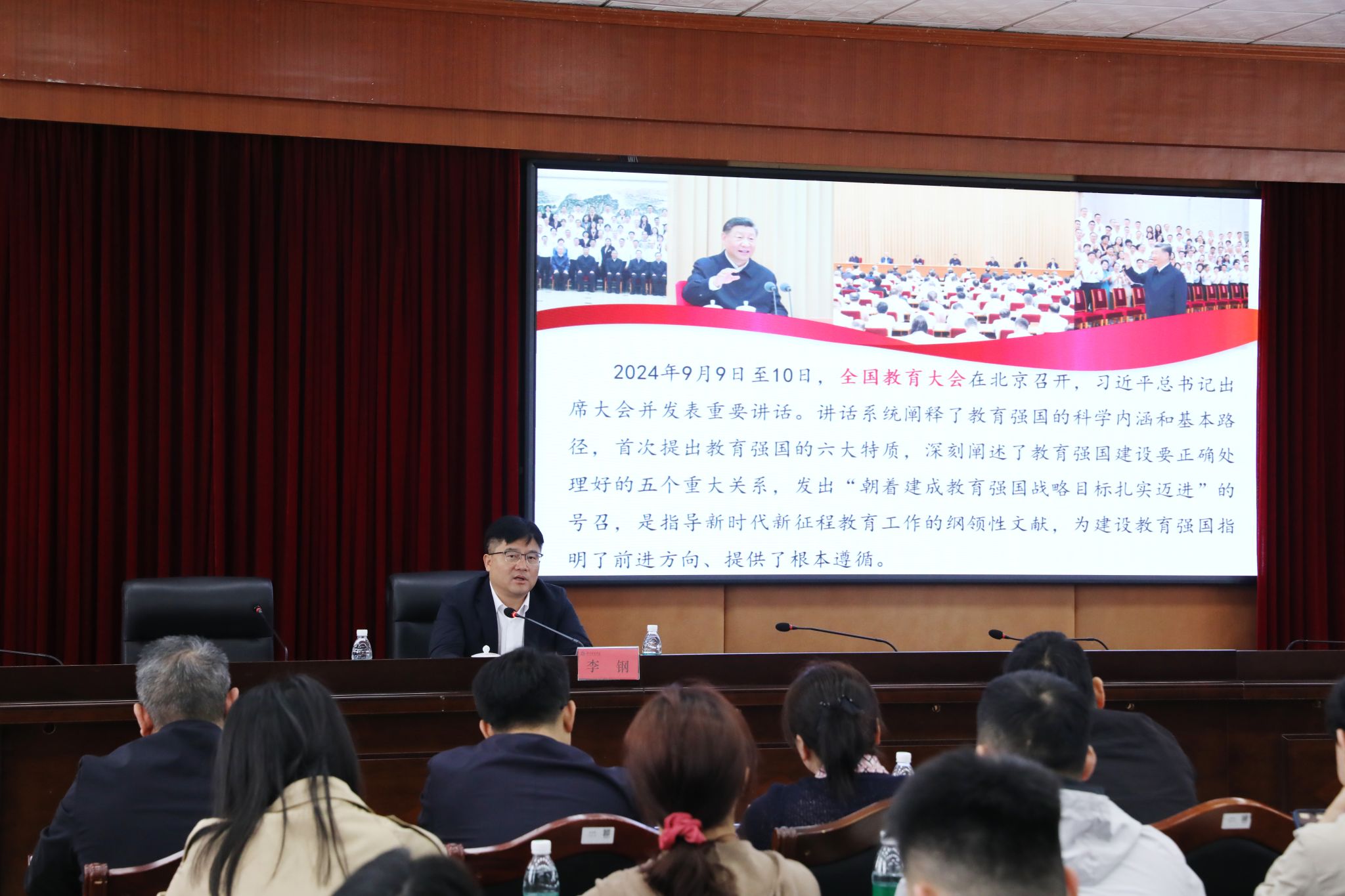 李钢传达了全国教育大会、全省教育大会、永州市教育工作会议与学生思想政治教育工作相关的主要精神,从坚持“党建引领、提升效能、规范管理”等三个方面对辅导员队伍建设提出了新要求。