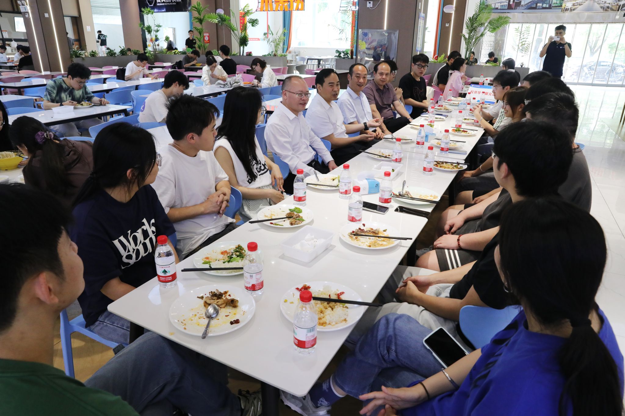 本网讯(通讯员 王志成 摄影 谢志豪)“我们始终认为,学生不仅是受教育的对象,更是治校的参与者。”5月14日中午,校党委副书记、校长‌黄创霞,党委委员、副校长何海,党委委员、组织部部长杨涛与来自不同学院的16名学生代表在松园食堂共进午餐,交流相关问题,倾听学生诉求,进行现场解答。