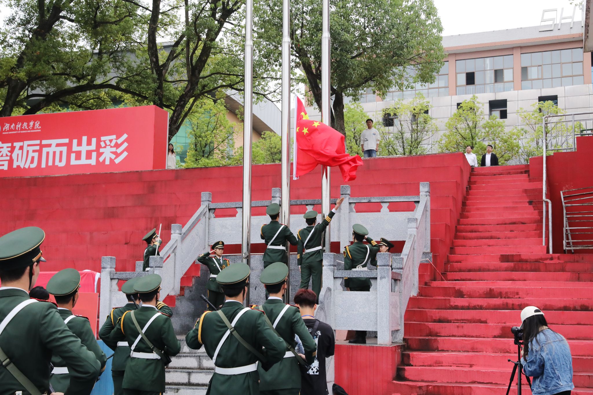开学典礼在庄严的国歌声中正式拉开帷幕。