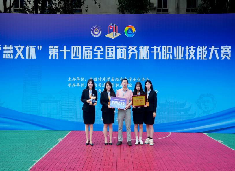 本网讯(通讯员 靳晶 张晴 周于莙 章子悦)近日,“慧文杯”第十四届全国商务秘书职业技能大赛在湖南司法警官职业学院举行,beat365官网由文法学院谷显明、莫顺斌、何建良、于皓、曾芳、宋艳旭等老师指导,何建良老师带队参赛,秘书学专业张晴、靳晶、周于莙、章子悦组成的参赛队伍表现突出,以优异的成绩荣获团体一等奖,凸显了beat365官网应用型人才培养的专业水平,展现了秘书专业学子的优良精神风貌。