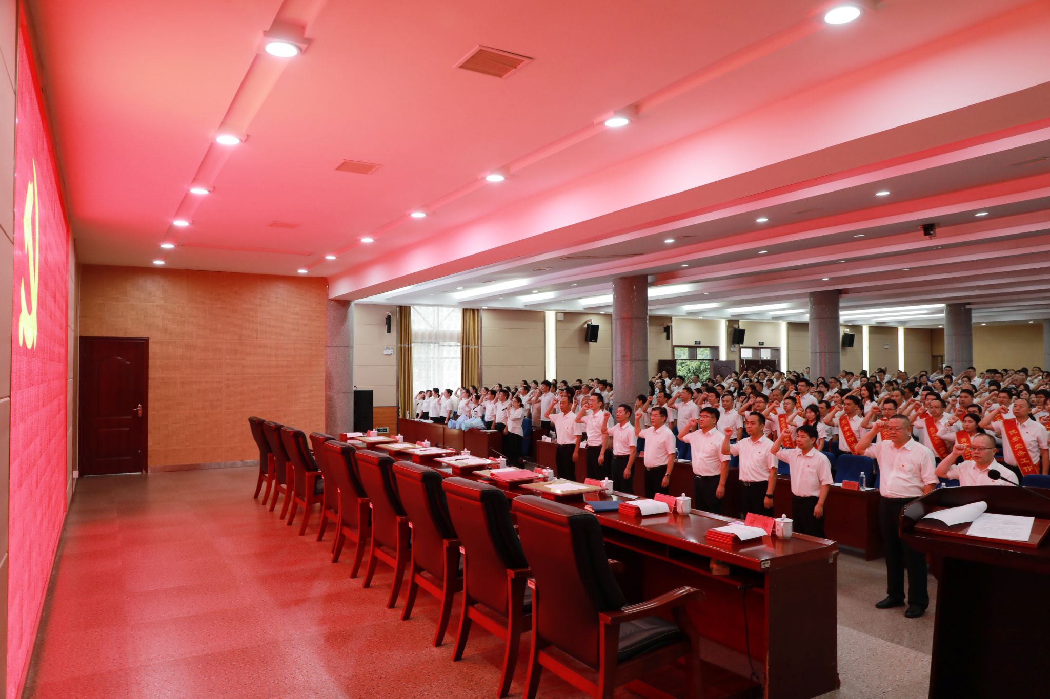 全体党员奏唱国歌、重温入党誓词。