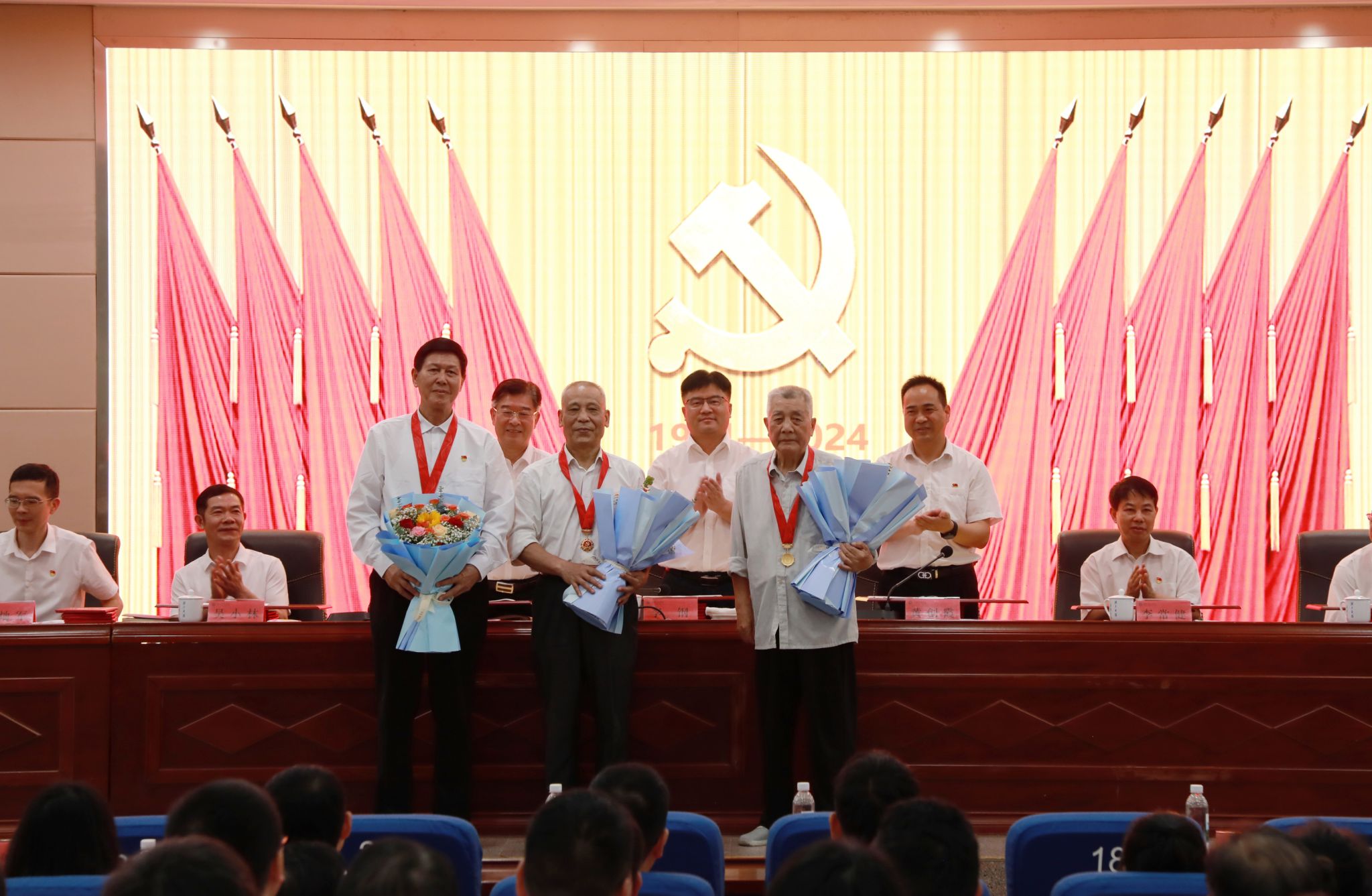 校党委副书记宋宏福宣读“七一”表彰决定,对“光荣在党50年”纪念章获得者、先进直属党组织、教师党支部书记“双带头人”标兵、党务工作示范岗、青年教工党员示范岗、优秀党务工作者和优秀共产党员提出表彰。