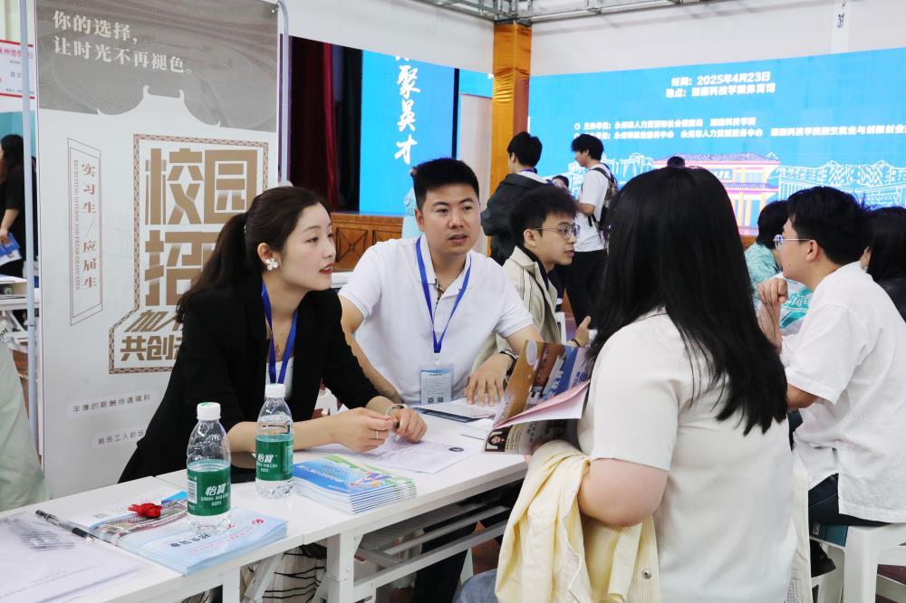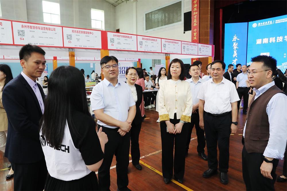 湖南日报·新湖南客户端4月23日讯(通讯员 向玉珍 向薛峰)4月23日上午,beat365中文官方网站举行2025年春季大型综合类双选会。beat365中文官方网站党委书记李钢,党委副书记、校长黄创霞,副校长郑银芳,永州市人力资源和社会保障局党组书记、局长、一级调研员骆方方,永州市人力资源和社会保障局副局长陈巍出席双选会。现场共有180余家企业参与,提供了涵盖教育、计算机、机械、生物等众多领域的4300余个就业岗位,为毕业生们提供了广阔的就业选择空间。
