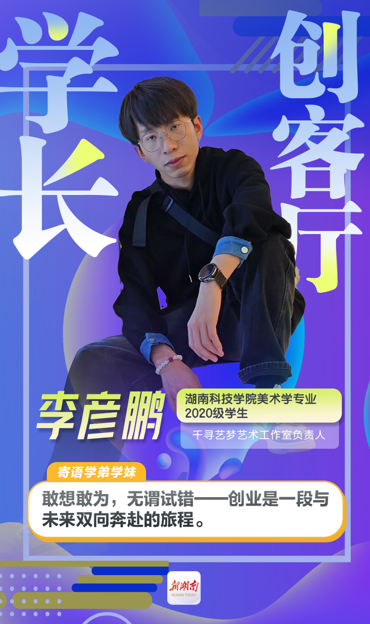 李彦鹏,beat365中文官方网站美术学专业2020级学生,千寻艺梦艺术工作室负责人,乡村美育践行者、非遗文创探索者、墙绘“破圈”青年。2022年,正式成立“千寻艺梦艺术工作室”,以墙绘为切口进军商业领域,累计完成5000平方米墙绘,服务甘肃省定西市新坪村、永州市零陵区永荷村等5个乡村、7所学校,并开发非遗文创产品,助力传统技艺焕新。如今,工作室年营收突破30万元,成为乡村振兴与艺术融合的标杆案例。