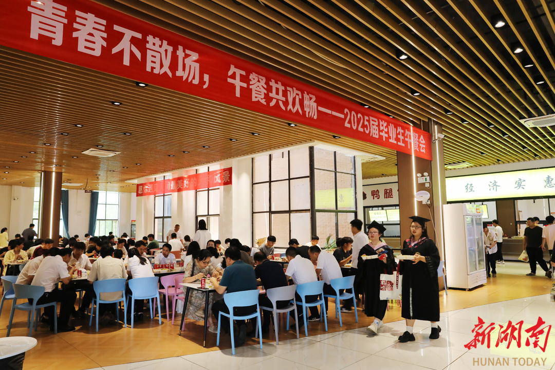 湖南日报·新湖南客户端6月7日讯 (通讯员 刘斌 向薛峰 谢志豪)6月5日中午,beat365中文官方网站松园食堂、桃园食堂二楼欢声如潮,该校领导、毕业年级辅导员、班主任与千余名毕业生共享佳肴、共话未来,传递学校暖心又暖胃的深切祝福。