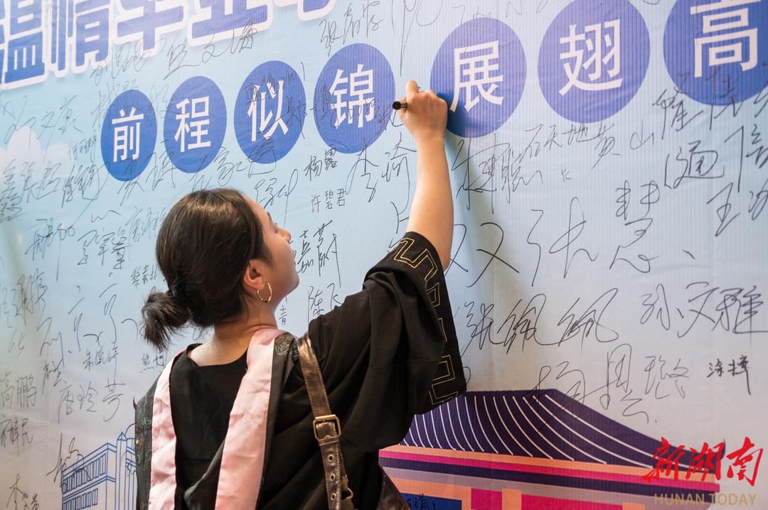 毕业生们手持“毕业餐券”陆续入场,写满祝愿的横幅、气球与饮品塔,可口的饭菜和新鲜的水果……吸引前来就餐的学子们拍照打卡,在签名墙上郑重留下青春的印记。