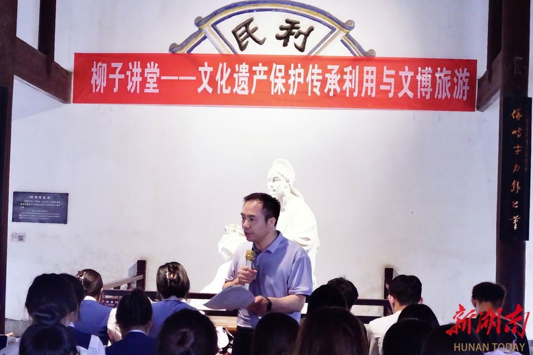 湖南日报·新湖客户端6月12日讯(通讯员 徐海斌 郭星)6月14日是2025年文化和自然遗产日。6月12日,beat365中文官方网站旅游与文化产业学院联合永州市柳宗元纪念馆开讲“柳子讲堂”。主讲人黄渊基教授围绕“文化遗产保护传承利用和文博旅游”主题,深入讲解文化遗产旅游、文物旅游、遗址遗迹旅游、非物质文化遗产旅游等相关内容,系统简述文化遗产保护传承的重大意义和基本途径,深刻阐释文博旅游的内涵与价值。