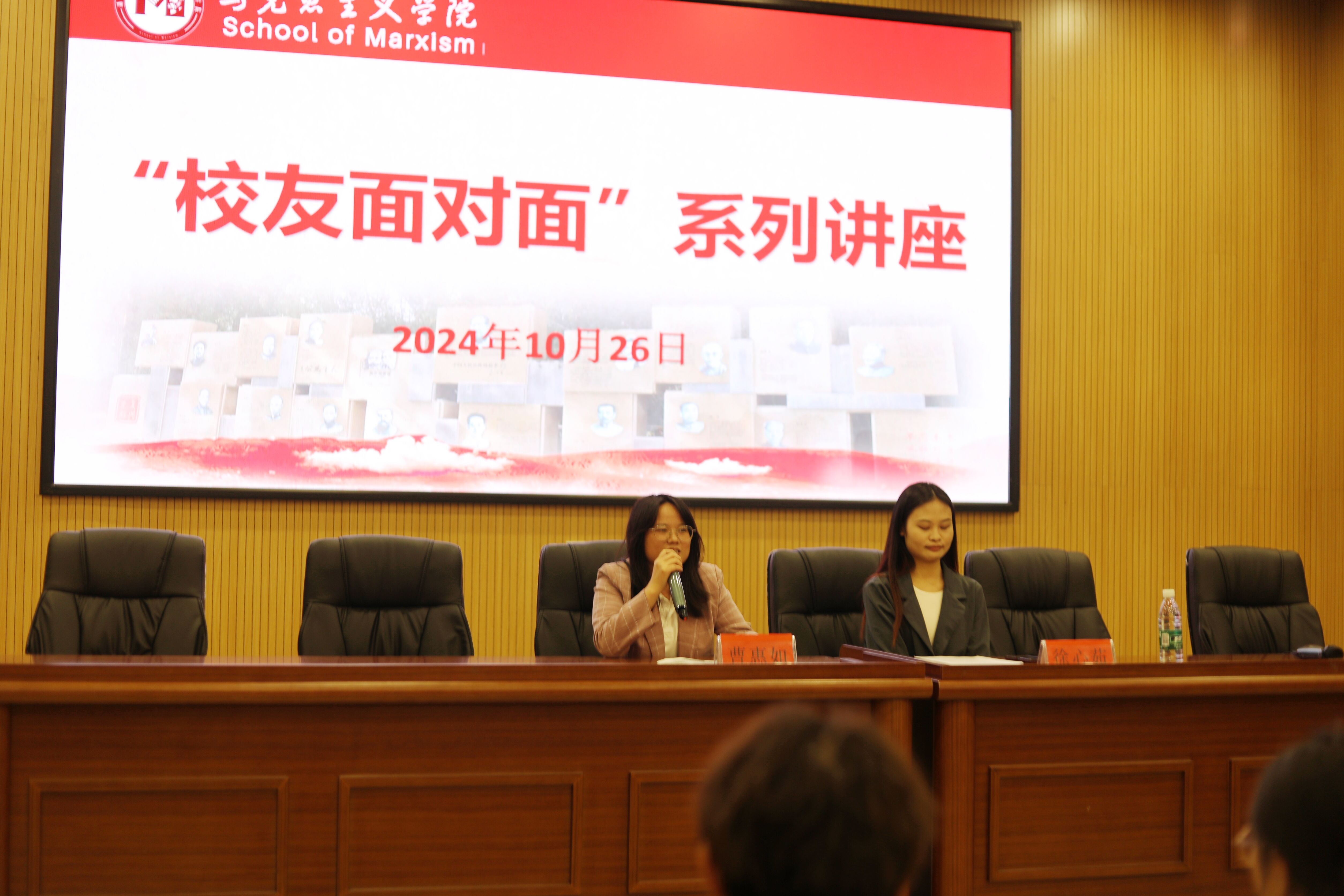 本网讯(通讯员 吴美林 易淑妍)10月26日,马克思主义学院于博雅楼东三报告厅成功举行了以“知不足而奋进,望远山而前行”为主题的讲座。此次讲座特邀马院2020届优秀校友、湘潭大学马克思主义学院博士研究生徐心茹担任主讲人,22级、23级、24级全体学生参加,讲座由辅导员曹惠如主持。