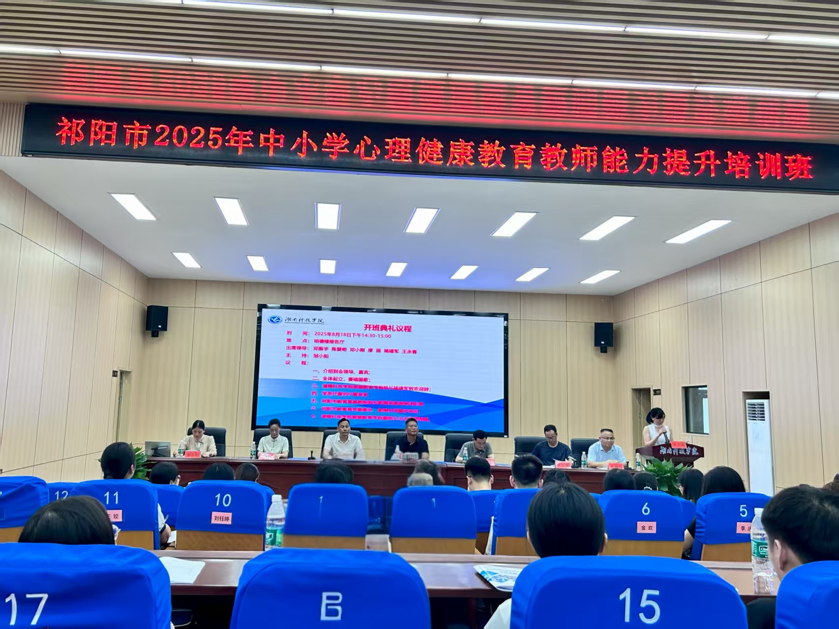 本网讯(通讯员 曹湖云 于碧)8月18日,祁阳市2025年中小学心理健康教育教师能力提升培训班在beat365官网开班。祁阳市教育局党委委员、副局长邓振宇,祁阳市教师进修学校、beat365中文官方网站继续教育学院相关负责人及80名祁阳市中小学心理健康教育教师参加开班典礼。